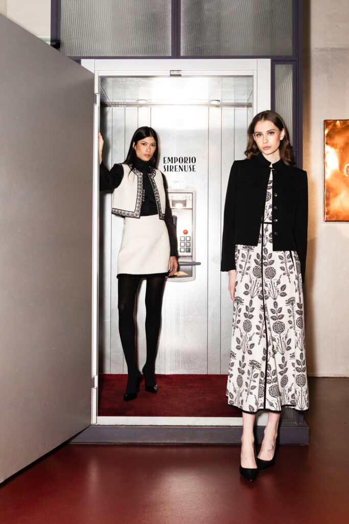 Per la prima volta, Emporio Sirenuse esplora il guardaroba autunnale con una collezione che celebra silhouette senza tempo, enfatizzate da tessuti pregiati e dettagli raffinati. Trench, giacche strutturate, coulotte e pantaloni dai volumi importanti e l’elegante reinterpretazione del completo di lana, uniti ad abiti preziosamente ricamati, conferiscono alla nuova collezione un’attitudine precisa che fonde l’heritage della sartorialità italiana alle influenze del bacino medio-orientale. Ricami d’ispirazione bizantina, pizzi, sangallo e ricercati dettagli metallici, evocano suggestioni di viaggi oltre la Costiera Amalfitana.