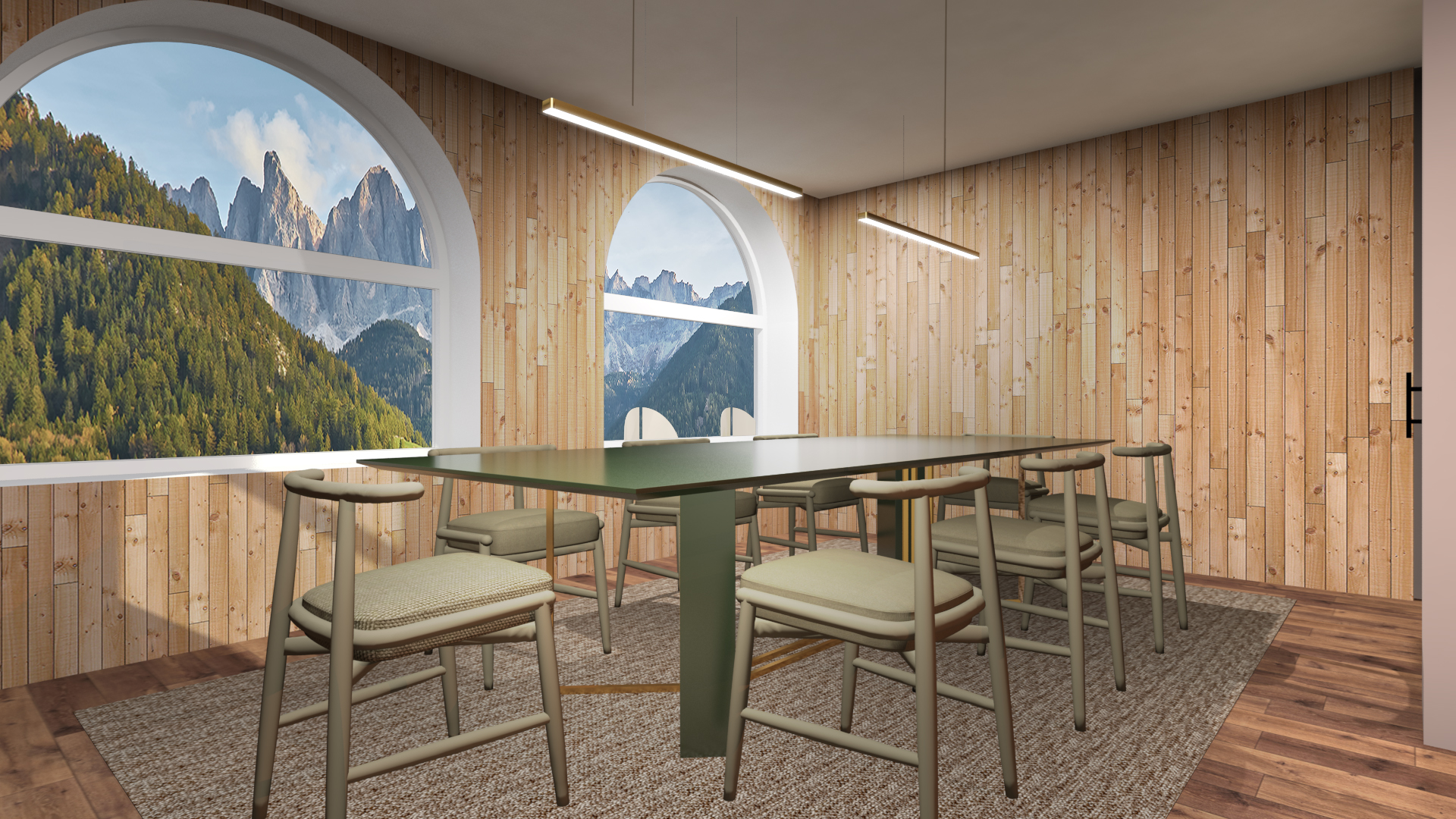 Situato nel cuore del centro storico con una spettacolare vista sulle Dolomiti, il nuovo ufficio è stato progettato dallo stesso Studio EXHIBITA come spazio moderno e funzionale per le attività di un’agenzia di progettazione eventi, ma con il touch intimo e accogliente di un rifugio, anche grazie a suggestive scelte cromatiche come bordeaux e verde bosco, alle texture materiche e all’ampio utilizzo di boiserie in legno, che rievocano l’immaginario montano e che si accostano armoniosamente alla sofisticata eleganza degli elementi di design e degli arredi progettati ad hoc.
