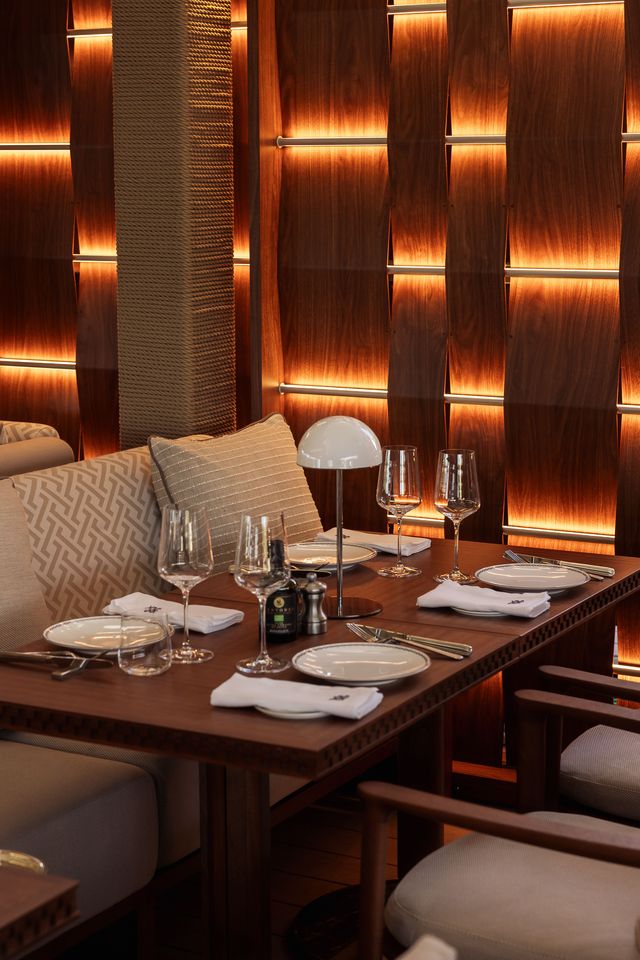 Lo studio di interior design FANTIBOZZETTIMENEGON, fondato da Martina Menegon e Fabio Bozzetti, firma i nuovi interventi per due brand simbolo dell’hospitality italiana: Casa Fiori Chiari, Vesta e Twiga, all’interno della strategia di espansione promossa da Triple Sea Food. I progetti, situati a Forte dei Marmi e Porto Cervo, raccontano una visione coerente ma mai replicata, capace di adattarsi con autenticità e sensibilità ai diversi contesti. La cifra stilistica dello studio si esprime in un linguaggio progettuale raffinato e narrativo, dove il paesaggio, la materia e l’identità locale vengono tradotti in atmosfere evocative e accoglienti. Twiga Forte dei Marmi Trasformazione e fascino: tra giorno e notte, un intreccio di design e funzione. Il nuovo concept del Twiga nasce da una riflessione profonda sulle diverse anime del locale, diviso tra l’anima diurna del beach club e quella notturna del ristorante e club. L’ispirazione rimane quella africana – coerente con la storia del brand – ma viene riletta con un’estetica aggiornata: legno intarsiato, cuoio, corde e tessuti dai toni neutri e pattern delicati evocano l’eleganza discreta dell’epoca coloniale. Un sistema di pannellature mobili e componibili, realizzato con fasce in legno e tubi metallici, definisce ambienti mutevoli: di giorno, elementi architettonici; di sera, si trasformano in linee luminose scenografiche che accompagnano il passaggio delle ore. L’intreccio, filo conduttore del progetto, ritorna in molteplici dettagli: le panche del ristorante Vesta sono realizzate in legno massello e cuoio burgundy intrecciato, mentre il bancone bar si distingue per una lavorazione in cotto smaltato che richiama l’effetto di scaglie intrecciate, sormontato da un piano in alabastro retroilluminato.