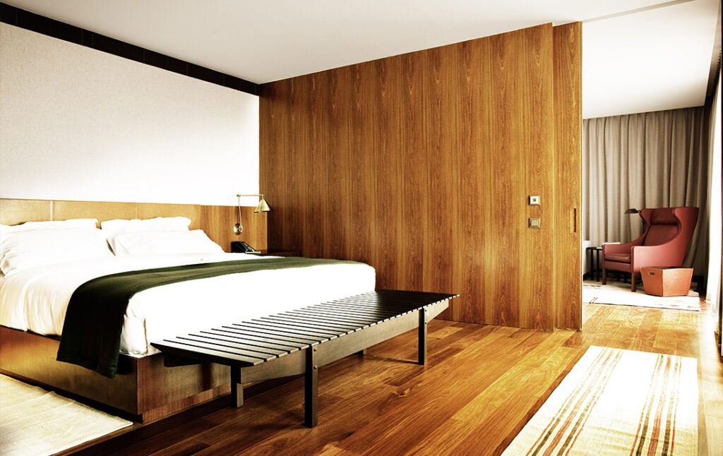 La hall, le camere, la spa raccolgono in grande armonia con la filosofia e lo stile dell’Hotel pezzi della collezione di Felisi.