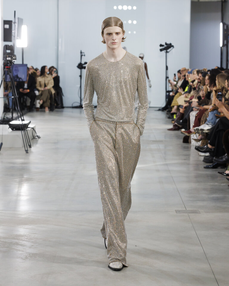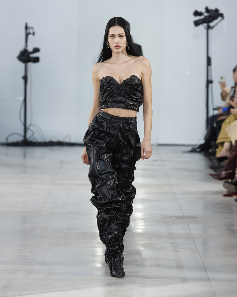 Forza e vulnerabilità. Durezza e fragilità. Oscurità e luce. Passato e presente. Contraddizioni e antinomíe convivono nel racconto di Giuseppe Di Morabito, che nel suo debutto in passerella mette in scena una rappresentazione complessa, che oltrepassa il consueto rituale di moda per diventare riflessione sul presente.
