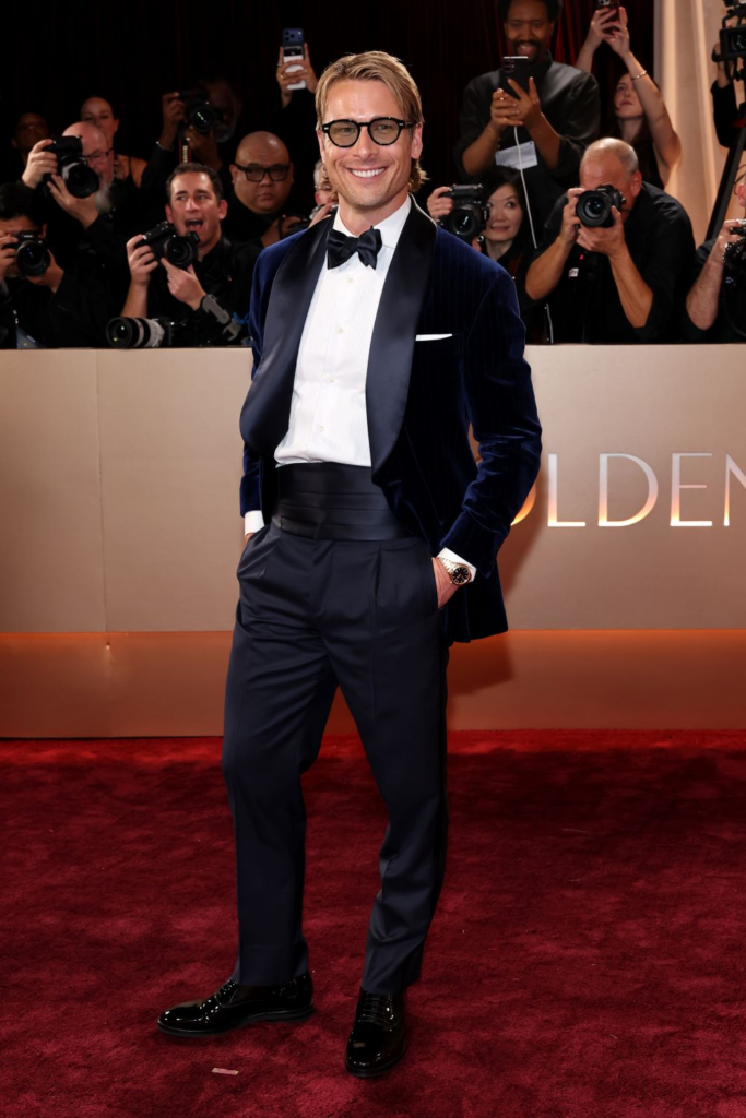 George Clooney in Giorgio Armani Amal in BalmainBEVERLY HILLS, CALIFORNIA – JANUARY 11: (FOR EDITORIAL USE ONLY) Charli xcx attends the 83rd Annual Golden Globe Awards at The Beverly Hilton on January 11, 2026 in Beverly Hills, California. (Photo by Amy Sussman/Getty Images) Saint Laurent Candidata per il Miglior Podcast per “Call Her Daddy”, Alex Cooper ha indossato un abito bustier su misura nero con paillettes e effetto coccodrillo. Gucci Glen Powell durante l’83ª edizione dei Golden Globes. Per l’occasione Glen Powell ha indossato una giacca tuxedo in velluto con rever a scialle, un pantalone per tuxedo con pince, occhiali e accessori della Collezione Autunno/Inverno 2026 di Brunello Cucinelli.
