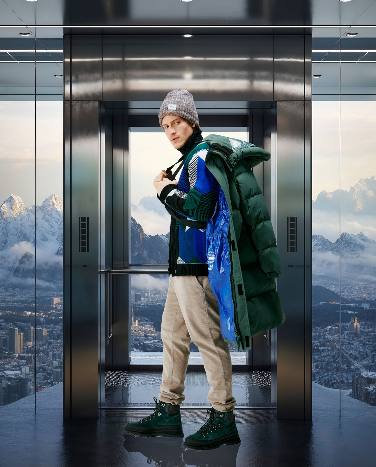 I capi sono presentati all’interno di un mondo avveniristico e surreale in cui l’AI trasforma e reinventa gli scenari iconici della città di origine del brand: la Napoli del domani appare in una serie di cartoline a colori che ne reinterpretano i luoghi simbolo come Piazza Plebiscito, Castel dell’Ovo, San Gregorio Armeno e altri hot-spot del centro urbano, dai Quartieri Spagnoli alla metropoli sotterranea.