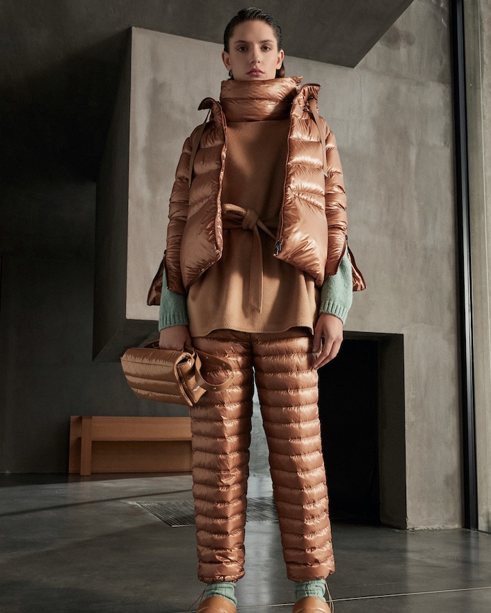 La gamma prodotti è ancora più vasta: pantaloni e gonne abbracciano l’elegante rigore così come il funny contemporaneo in un gioco di diverse proporzioni e materiali; la maglieria è poliedrica, spazia dal gilet preppy in mix di alpaca ai soffici golf in cashmere oltre ai cardigan e alle versioni più glam con spalmature e dettagli accattivanti; i completi sono sartoriali, strizzano l’occhio al maschile ma sono realizzati con tessuti altamente femminili.