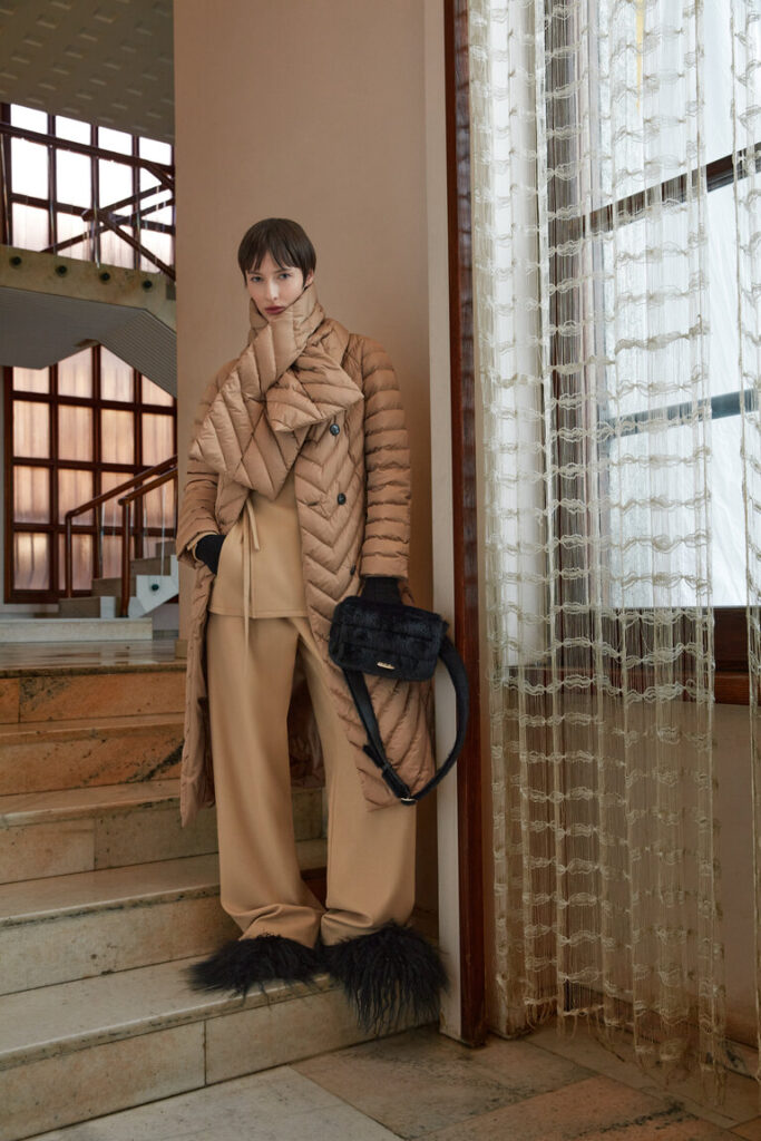 Un’estetica raffinata, plasmata da materiali pregiati e lavorazioni innovative, ridefinisce l’iconicità del capospalla, che si declina in un’ampia varietà di interpretazioni: dal piumino high-tech al cappotto sartoriale, fino ai capi dall’attitudine più sofisticata. Completi impeccabili, pantaloni essenziali, gonne fluide, maglieria ricercata e accessori esclusivi completano una proposta pensata per una donna contemporanea, cosmopolita e consapevole. La collezione donna AI ’25 si articola in quattro visioni stilistiche complementari, che riflettono le molteplici sfaccettature dell’eleganza femminile: Origin, Excellence, Conceptual e Functional Wardrobe.