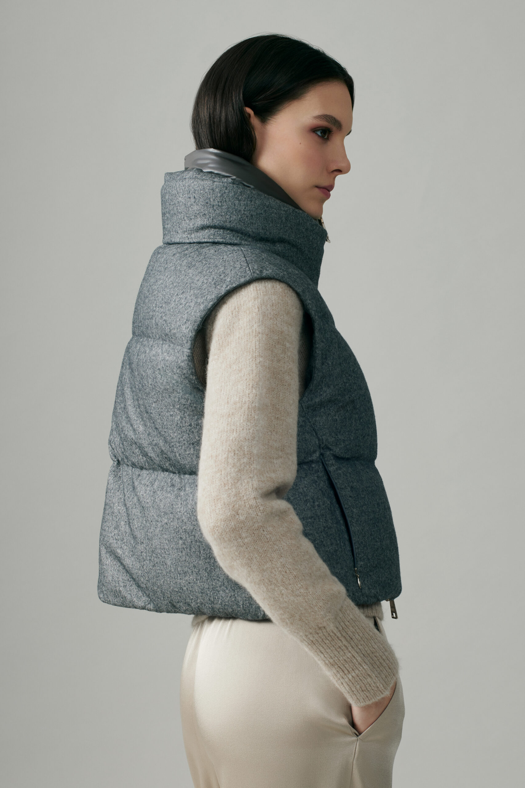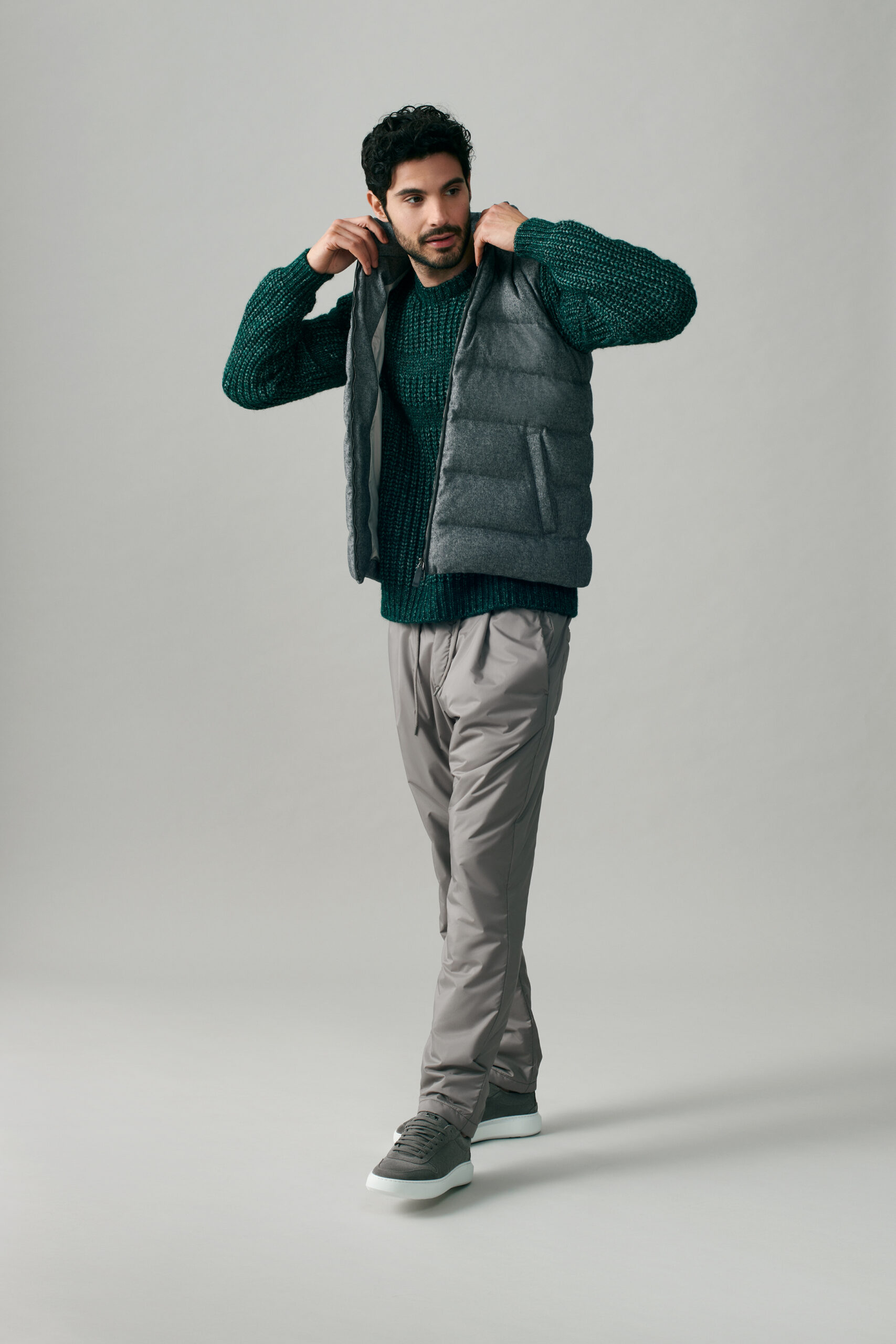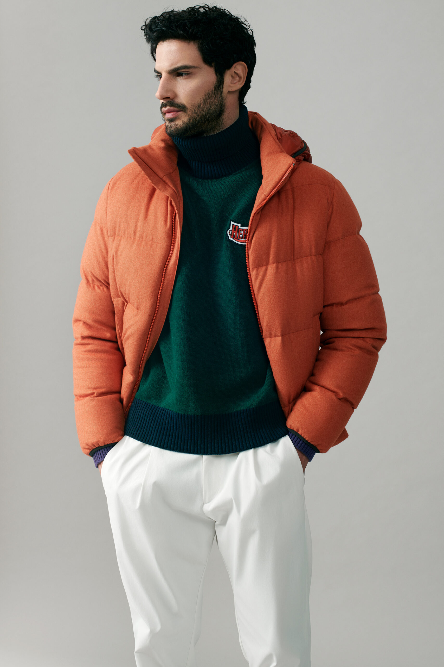 Rappresenta tutte le sfaccettature e declinazioni contemporanee dei filati più nobili, delle lavorazioni pregiate, un elogio alla bellezza che indugia nel “piacere dell’inutile”: questa stagione ha un’anima contemporanea e molto leisure; dominano i colori neutri a nobilitare ed esaltare i tessuti più pregiati, accostati a colori vitaminici che infondono energia positiva. È questo il tema dove hanno spazio, immancabilmente per Herno, il cachemire, il cachemire-seta che caratterizza i piumini più chic e la seta con trattamento water resistant.