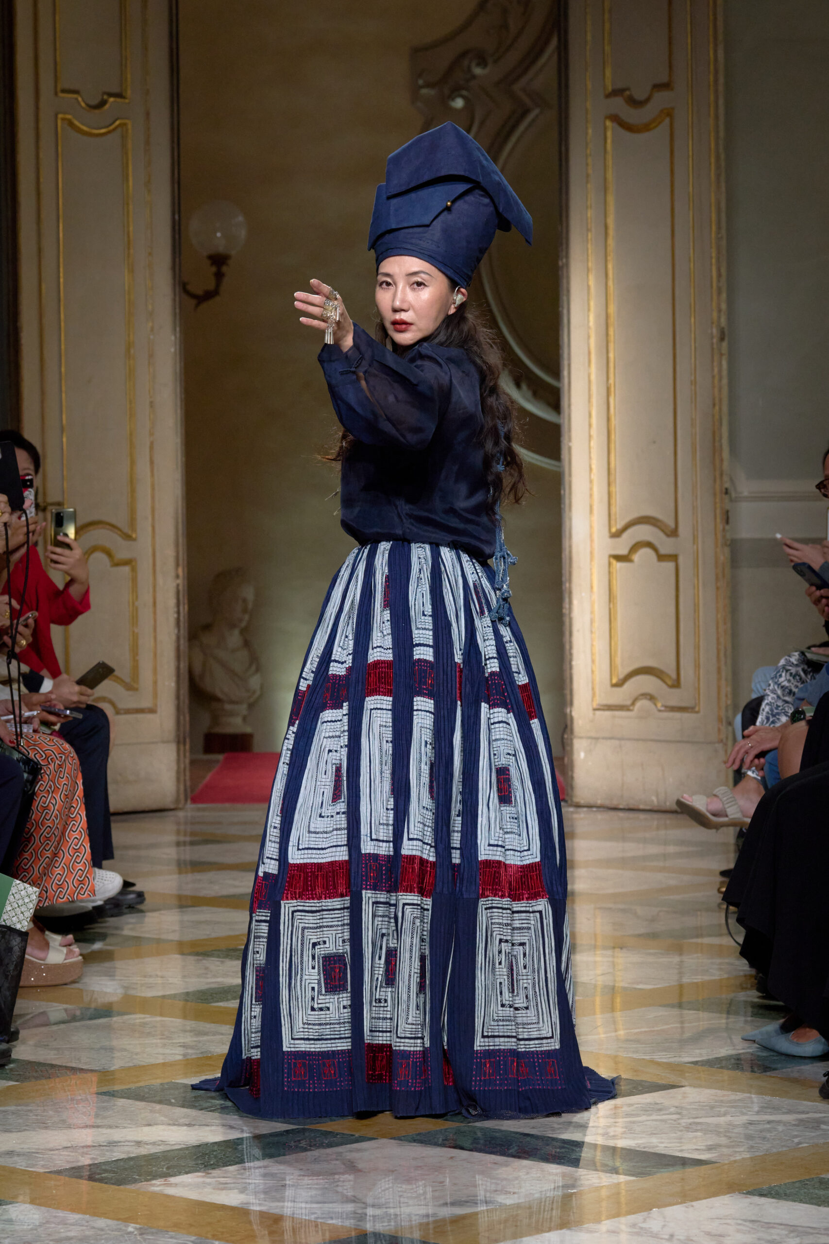 Hui Zhou Zhao, la signora della moda cinese che ama l’Italia e sfila da tempo a Milano, ha dedicato la sua collezione SS 2024 alla forza tranquilla delle donne capaci di vincere le battaglie senza fare le guerre e di trasformare i gesti del quotidiano in opere d’arte. Le donne Miao sono famose per il loro abbigliamento estremamente colorato e decorato dai preziosi ricami che le madri insegnano a fare alle figlie fin dalla più tenera età.