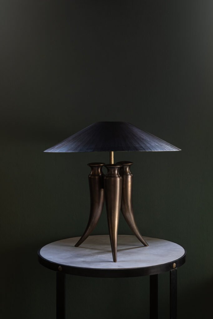 La serie CORNO, frutto della collaborazione tra Giovanna Ferrero Ventimiglia e G LAB, propone lampade interamente realizzate in bronzo, con un design che evoca forme scultoree e dinamiche.