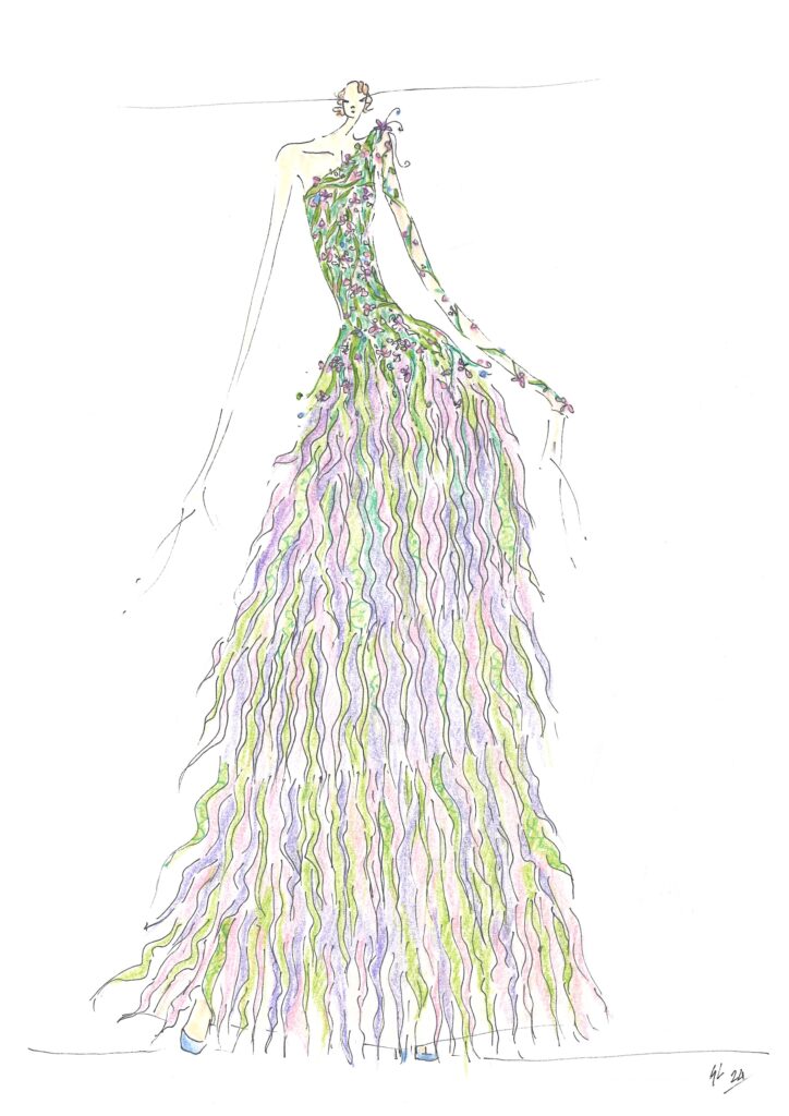 Per l’occasione, l’artista presenta una selezione di bozzetti e abiti originali, creazioni sceniche studiate nei minimi dettagli, capaci di evocare atmosfere lontane, suggestioni oniriche e mondi teatrali sospesi nel tempo o vestiti da sogno per il ballo di fine anno, tutti pezzi unici personalizzati, che traducono un talento modernissimo e multitasking tra moda, arte e danza.