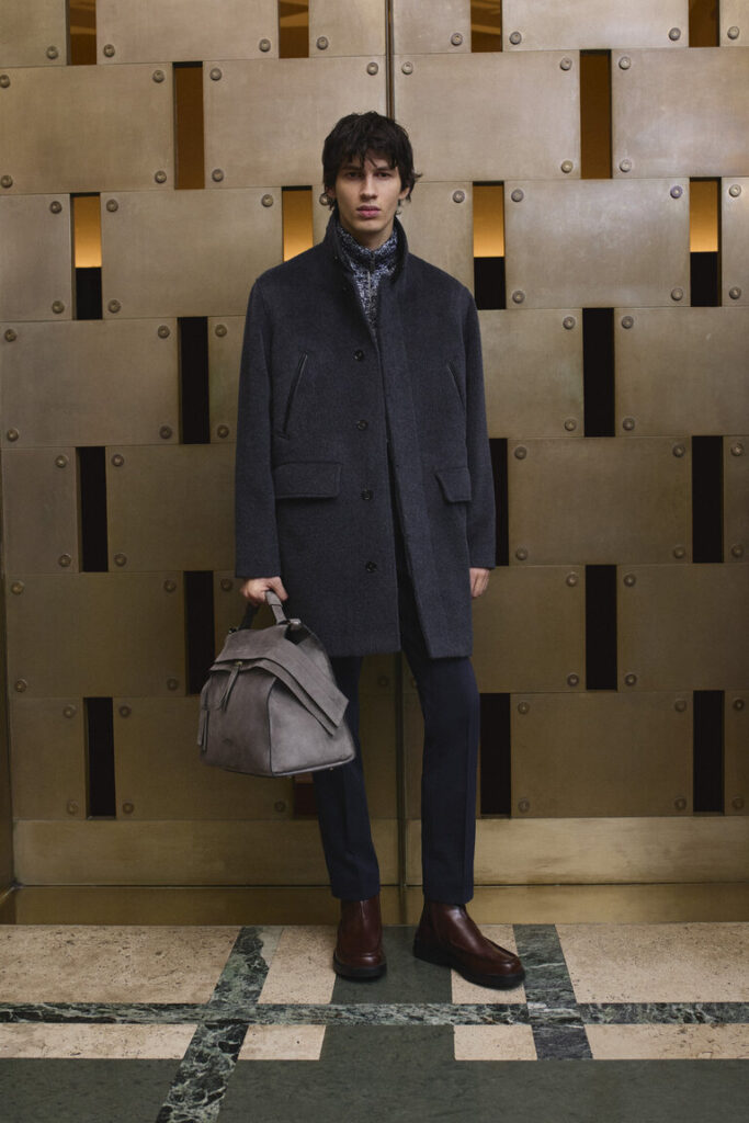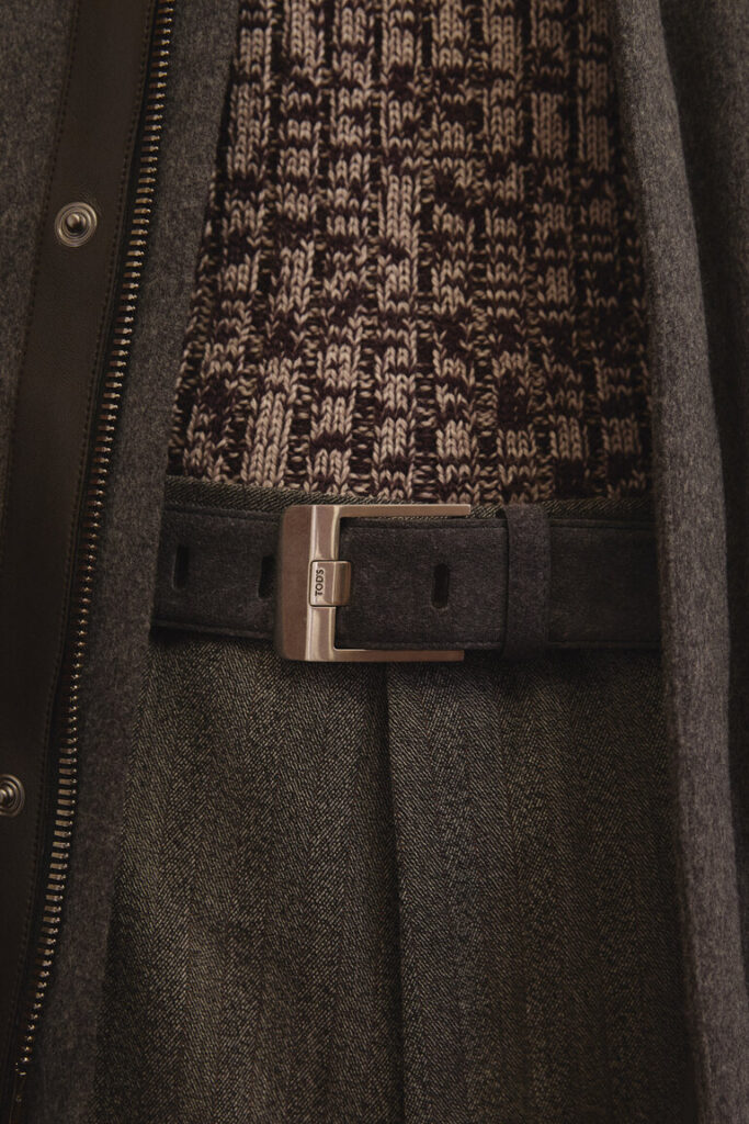 Il fulcro della collezione è il progetto Pashmy, massima espressione dell’eccellenza nella ricerca e selezione dei pellami più pregiati. Il Pashmy si distingue per l’utilizzo di pelli straordinariamente morbide, setose e leggere, capaci di evocare la delicatezza e la finezza della pashmina, da cui deriva il nome stesso. Il Pashmy viene proposto in due varianti: un pregiato suede e una nuova versione in nappa leggerissima, espressioni diverse dello stesso concetto di lusso raffinato. Questi materiali esclusivi abbracciano i prodotti più iconici della collezione, dai capispalla alle calzature, passando per le borse. Per questa collezione, il Direttore Creativo Matteo Tamburini reinterpreta in chiave Pashmy i classici del guardaroba maschile, come il Bomber e la Shirt Jacket, conferendo ad ogni capo un’inedita morbidezza e rendendolo un’esperienza di comfort assoluto. La palette si declina nei toni naturali della terra, dal sabbia al bruciato al tabacco. Ciascun capo è impreziosito dalla T Signature, che, ricamata a mano sul collo, ne enfatizza la qualità artigianale.