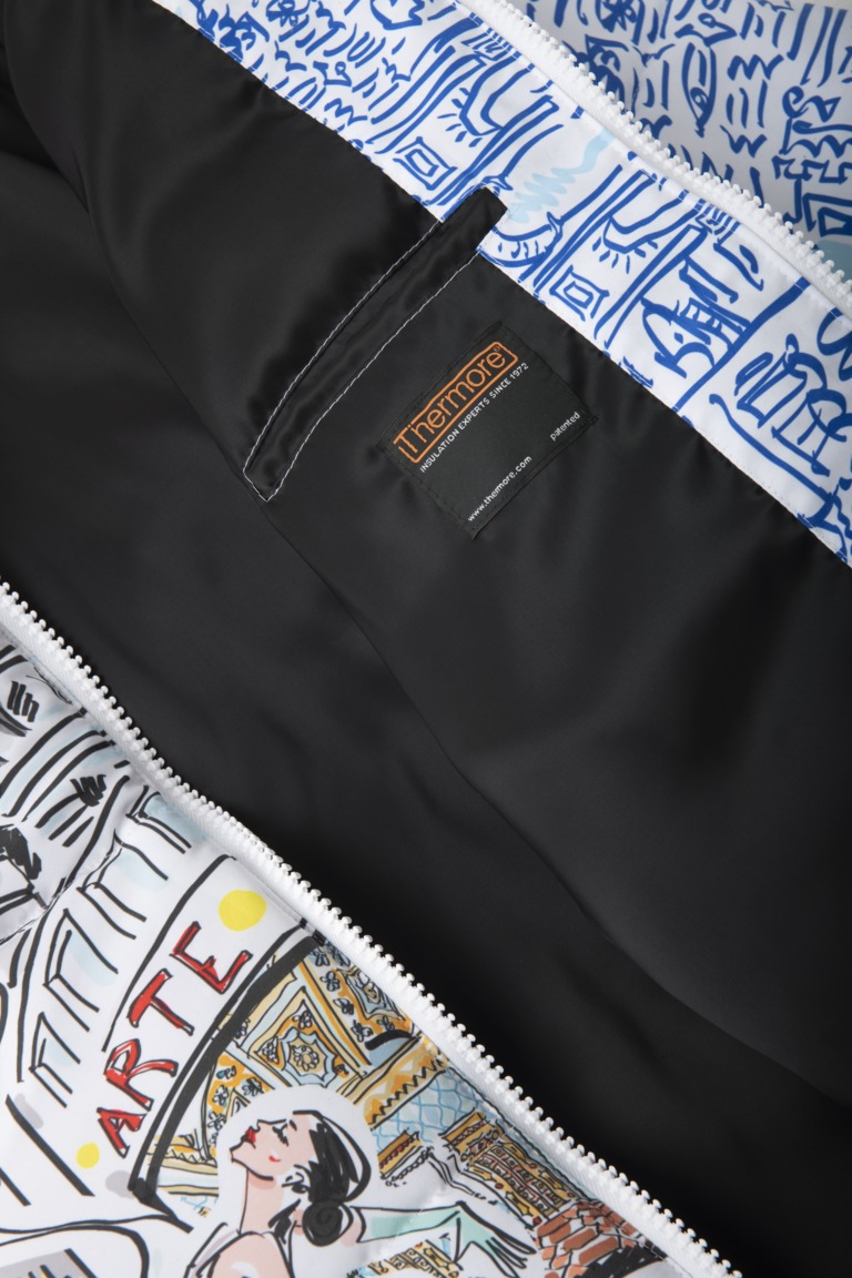 L’anima tecnica del capo è l’imbottitura Thermore® Ecodown, simbolo di responsabilità ambientale e ricerca. Realizzata con fibre 100% riciclate da bottiglie PET post-consumo, questa soluzione garantisce massime performance termiche e una straordinaria morbidezza. Il materiale, certificato GRS e OEKO-TEX® testimonia come la tecnologia possa porsi al servizio della bellezza e della riduzione dell’impatto ambientale.