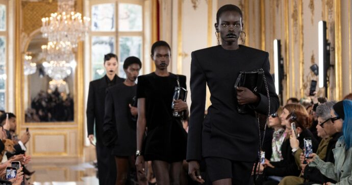 Tornando alle sfilate di Parigi mi sono piaciute queste cose: 1) The Row delle sorelle Olsen ha sfilato ed ha impedito l’uso dei cellulari ( ma ci pensate che queste due ragazze hanno iniziato a fare cinema e tv fin da quando erano in fasce e nel 2013 hanno vinto il premio come migliori disegnatrici di capi femminili ai CFDA e sono e giovani donne più ricche dell’intera industria dell’intrattenimento!) 2) Ho adorato l’invasione in passerella alla sfilata di Chloé del figlio di Chemena Kamali, la nuova designer che ha strappato applausi anche per la sua collezione 3) Il coraggio di Maria Grazia Chiuri nel fare abiti con logo DIOR gigante quando siamo nell’era “no logo”. Lei va sempre controcorrente 4) Gli abiti in tessuto dei collant di YSL , ho pensato alla felicità dei produttori di calze che stanno affrontando una grave crisi a causa delle temperatura alte che oramai hanno drasticamente ridotto l’uso dei collant. 5) L’invito di Balenciaga che ha inviato agli ospiti un omaggio acquistato su Ebay. C’è chi ha ricevuto degli orecchini, chi dei bicchieri, chi un alzatina in sheffield. 6) Quella stilosa di Victoria Beckam che anche con le stampelle ha affrontato la passerella ed è andata a baciare il suo David. 7) Il nero di Piccioli per Valentino e lo ringrazio perchè se mi creava un altro colore Pink PP io lo denunciavo per oltraggio “al colore”.