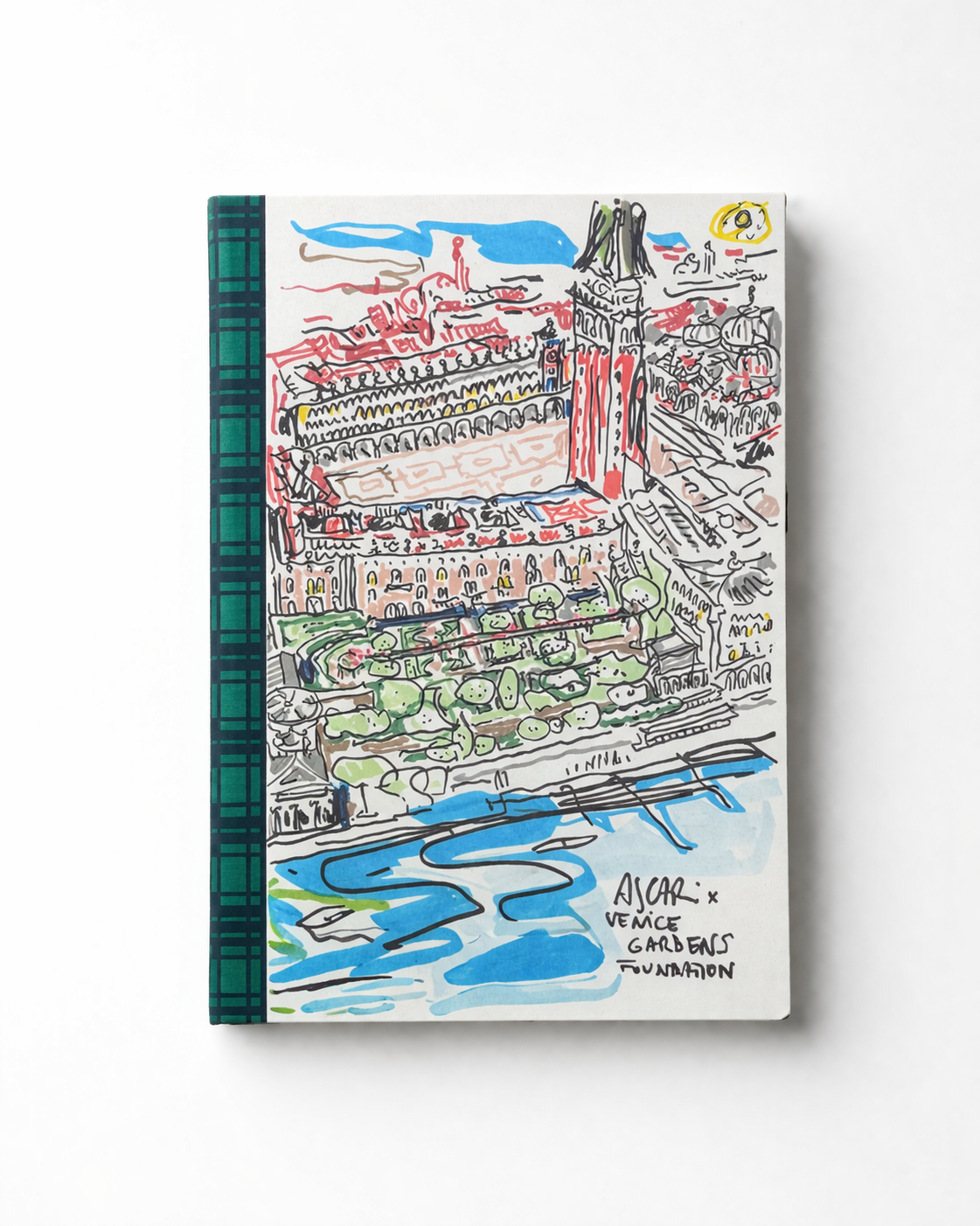 Da questo incontro nasce una produzione inedita di disegni e piccoli oggetti dedicati ai due compendi monumentali, in cui il linguaggio visivo dell’artista — caratterizzato da uno stile “massimalista e barocco” — si confronta con l’equilibrio e la memoria storica dei giardini veneziani.
