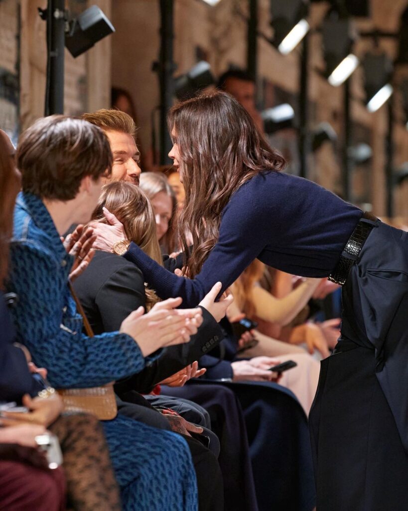 Ma passiamo alle lacrime di Victoria Beckham che si è emozionata durante la sua sfilata. Devo dire che per dirla alla francese “chapeau!” 26 anni di matrimonio con il bel David, e una bella famiglia in prima fila a supportarla. Va bene ci sarà chi dice che è tutta una finzione eccetera eccetera… ma vi posso garantire che anche fingere non è così facile tanto che le coppie scoppiano anche molto prima. Ma più che le sfilate hanno tutti postato tavoli nei bistrot più chic dove si consumavano colazioni e il pain ou chocolat è stato più fotografato dell’ultima borsa di Valentino, la VLogo Moon bag che a me ricorda un fragrante croissant. Insomma a Parigi pieno di gente “faccio cose vedo gente” e fanatici della critica della moda che si sono dibattuti sulla sfilata di Demna per Balenciaga che fa sfilare la mamma e il debutto di Phoebe Philo con la sua linea di prêt-à-porter che debutta a fine mese. C’è gente che se l’è segnato sull’agenda, giuro.