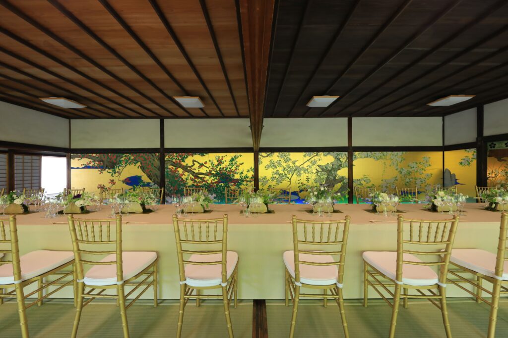 l’animo profondamente spirituale di questa città. Con oltre 2.000 templi e santuari rinomati per la loro architettura tradizionale, i loro impeccabili giardini zen e le sculture sacre, Kyoto incarna il patrimonio culturale del Giappone. L’eventoè culminato con una cena il 22 maggio presso il tempio Chishakuin, hosted dalla Dottoressa Nicola Gerber Maramotti, Consumer Channel Director di Max Mara.