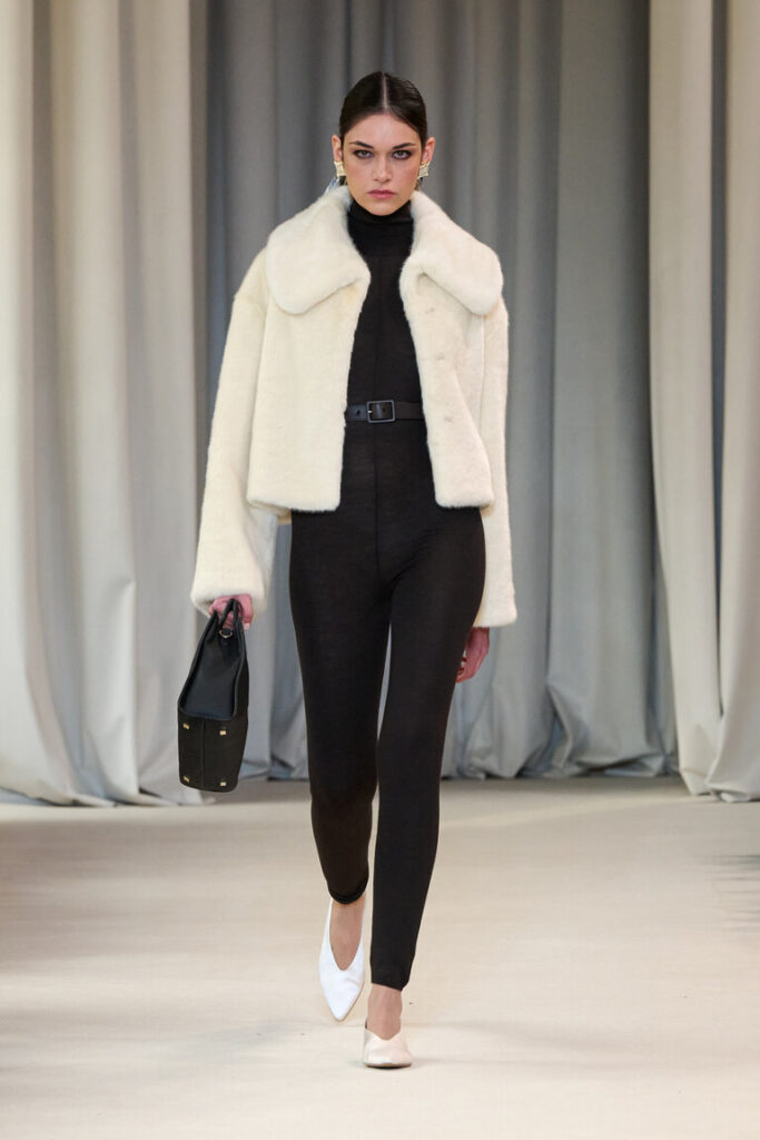 A 25 anni di distanza dal cerchio magico del Piccolo Teatro Studio, sede storica delle sfilate Laura Biagiotti, il brand torna a sfilare al perfetto Chiostro di Via Rovello che Ludovico il Moro impreziosì per farne dono a Cecilia Gallerani, ritratta da Leonardo Da Vinci nella celeberrima Dama con l’Ermellino.