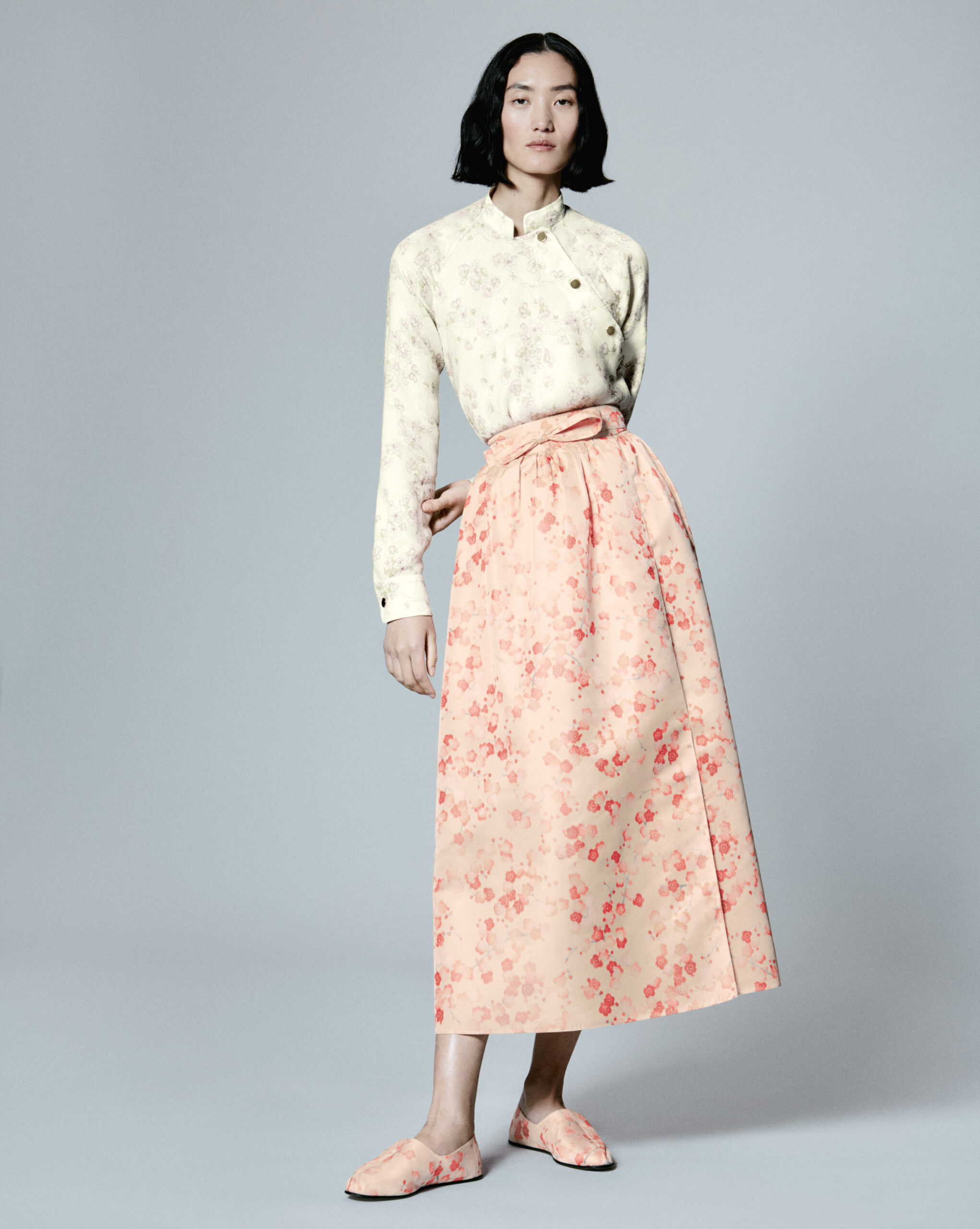 Per la Primavera Estate 2024, Loro Piana esplora le sue affinità con il Giappone – un Paese con cui condivide il profondo legame con la cultura dell’artigianato, il gusto non ostentato e lo stile senza tempo – e ripropone in chiave moderna, nell’attitudine e nei volumi, le silhouette tipiche della moda d’avanguardia del Sol Levante, nonché kimono morbidi e destrutturati, realizzati con tessuti di altissima qualità, frutto del recupero di antichi metodi di lavorazione e di tecniche innovative.