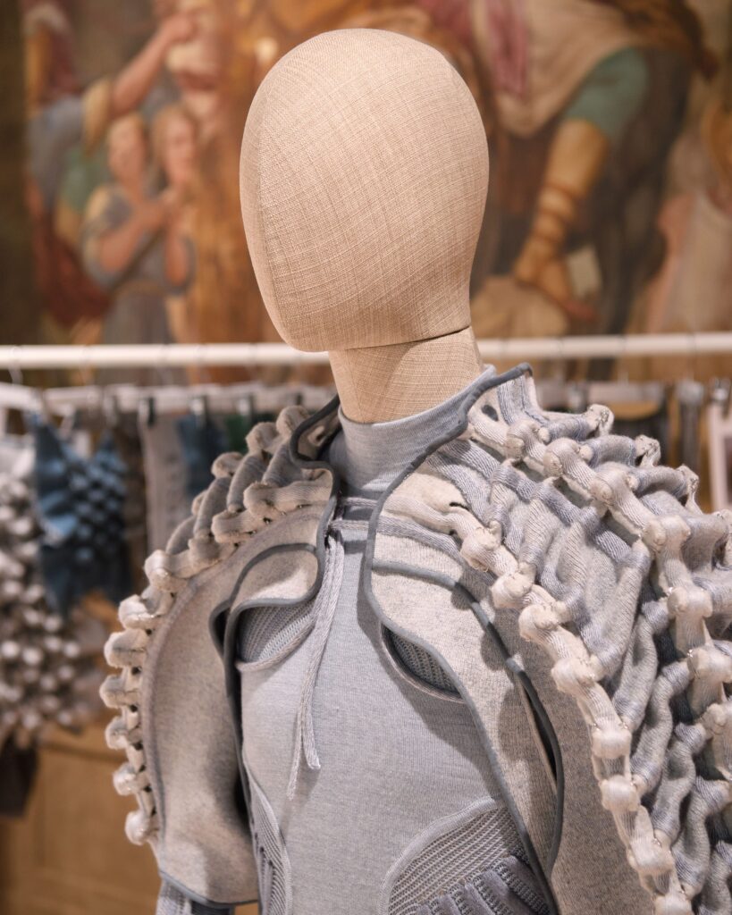 Tema del 2024, anno del centenario della Maison, era “Fast Forward Heritage”, una conversazione tra passato, pre- sente e futuro. Il compito era quello di creare una nuova icona del futuro realizzata in maglieria, progettata secondo gli standard di Loro Piana, con una sensorialità unica, uno stile elegante e senza tempo, e un’attenzione alla fun- zionalità. Gli studenti delle otto scuole partecipanti, tra cui Accademia Costume e Moda, Fashion Institute of Technology e Institut Français de la Mode, hanno sviluppato idee creative che esplorano il secolare patrimonio di Loro Piana, unendo artigianalità, competenze tecniche e materiali eccezionali per produrre un’icona di maglieria del futuro. Ogni pezzo creato dagli studenti partecipanti è stato, infatti, realizzato con gli straordinari filati Loro Piana – Cashmere 2/27, Coarsehair, Supercashmere, Royal, Wish®, Clan®, Sopravisso ed Equilibrio – che combi- nano magistralmente innovazione tecnologica, funzionalità e texture dalla qualità senza pari.