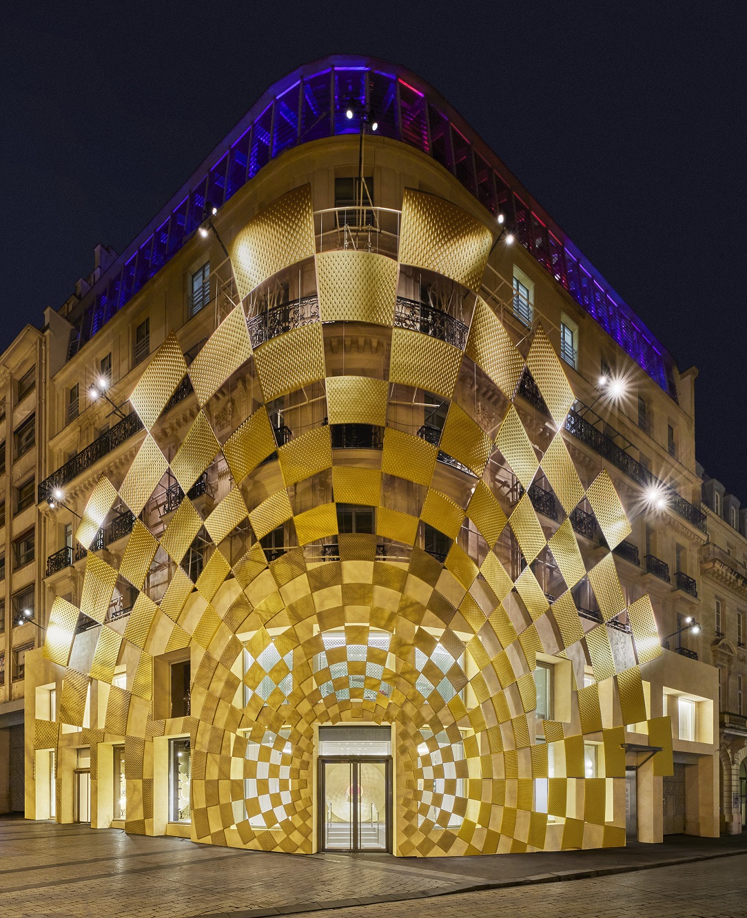 Ogni negozio sarà caratterizzato da un diverso concept ispirato al set up della sfilata, che pone al centro della scena il sole, fonte universale di opportunità, energia e valorizzazione. Gli spazi hanno l’ambizione di costruire ponti immaginari, ricreando lo spirito comunitario e la sensazione di elevazione al centro della sfilata di debutto di Williams. Una Parigi in mininiatura, con i suoi edifici e i suoi monumenti iconici, ricreata all’interno dei negozi invita i visitatori a interagire con l’installazione. Un differente concept prevede invece una ricostruzione dorata del Pont Neuf, ponte e location della sfilata scelto come collegamento metaforico tra Parigi e la Virginia, lo stato natale di Pharrell Williams, decorato da scacchiere Damier dorate. Gli emblematici bouquiniste e le Colonne Morris della capitale francese prendono vita all’interno del mondo Louis Vuitton. Alcune location saranno dotate di schermi che mostrano ologrammi a grandezza naturale di tutti i look della sfilata; in altri appaiono i minicart della sfilata carichi di bauli Monogram. In alcuni spazi saranno presenti anche stanze VIC e “spazi segreti”, dedicati alla scoperta della borsa Speedy P9, accessibili su invito.