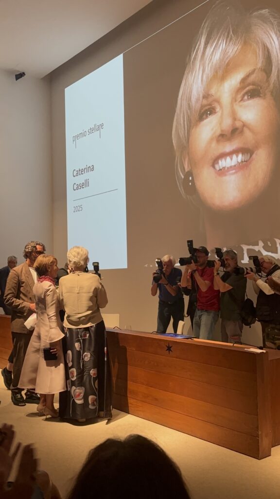 Se dovessi pensare ad una figura femminile che mi ricorda il modo di fare di Armani penso a Caterina Caselli una delle figure più importanti della musica italiana che da cantante è diventata una discografica e talent scout internazionale, avendo lanciato artisti come Andrea Bocelli, Elisa, Negramaro con la Sugar Music. Lei è definita “la signora della musica italiana” e a Torino ha ricevuto il Premio StellaRe, che non è un premio assegnato da Valeria Marini (sai che lei si firma nei messaggi sempre con Baci Stellari…) ma da una ben più autorevole Patrizia Sandretto Re Rebaudengo, fondatrice della Fondazione che porta il suo nome, una delle realtà più importanti dedicate all’arte contemporanea. Caselli ha ricevuto il premio , un’opera realizzata da Maurizio Cattelan, un anello di fidanzamento reso in una versione gigantesca in edizione unica. La prima a riceverlo fu proprio Franca Sozzani nel 2006, un riconoscimento alla sua visione. In occasione della cerimonia Simone Marchetti , European Editorial Director per il network europeo di Vanity Fair ha incalzato l’imprenditrice con una serie di domande: “Come si riconosce il talento?” le ha chiesto. “Il talento è timido – ha detto la cantante di “Nessuno mi può giudicare” – spesso è nascosto dietro una voce esitante, uno sguardo abbassato, una mano che sembra tremare, altre volte invece grida ed è impetuoso come è accaduto per Giuliano Sangiorgi dei Negramaro”.