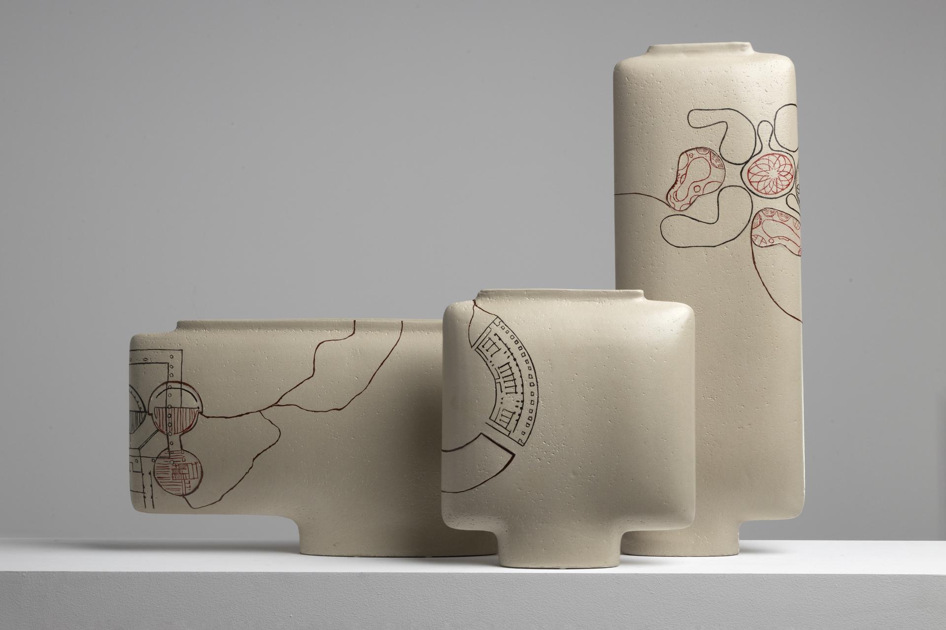 In questo modo, gli autori hanno collaborato insieme nel processo creativo, apportando la propria visione e le competenze dei rispettivi campi: tre vasi in ceramica di dimensioni diverse – progettati da Ludovica Serafini + Roberto Palomba – sui quali è stata provocata una rottura, riparata secondo la tecnica dell’urushidi Anita Cerrato.