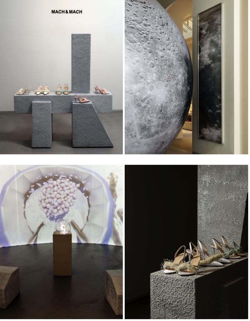 Cosmos, la presentazione della collezione Autunno/Inverno 2025, inaugura un nuovo capitolo nell’universo MACH & MACH. Il brand nasce nel 2012 a Tbilisi, in Georgia, grazie alle sorelle Nina e Gvantsa Macharashvili, con l’idea di dare vita a un design audace ed energico attraverso calzature, accessori e prêt-à-porter. Ommergendo i visitatori in un viaggio cosmico che esalta l’identità del brand. L’allestimento è pensato per mettere in risalto l’essenza dell’artigianalità italiana, con un focus speciale sulle Floating Pearls, il nuovo modello di questa stagione. Display cromati con texture lunare accolgono le nuove creazioni e le iconiche collezioni di scarpe Double Bow, Orchid, Galaxy, Le Cadeau, disposte come costellazioni in orbita.