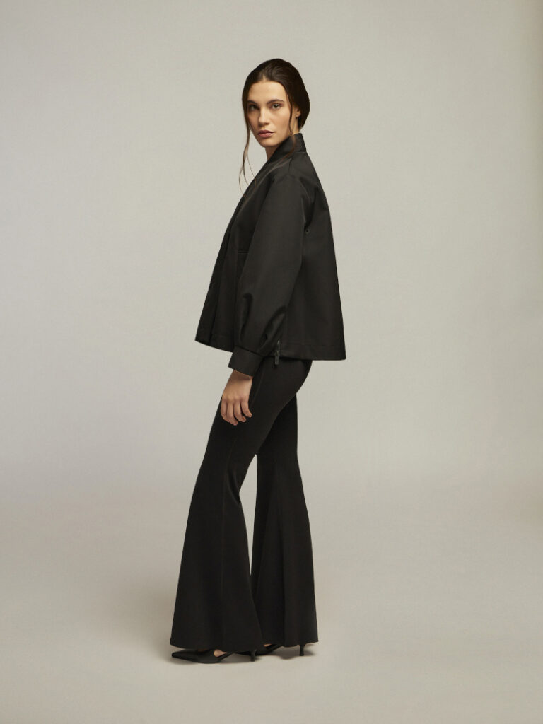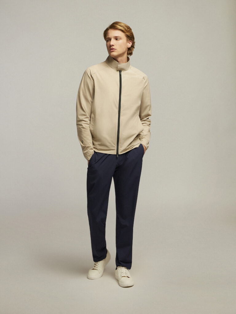Le proposte uomo reinterpretano i codici dello sport in chiave formale, con tagli e costruzioni raffinate, mentre la linea donna si ispira al mondo dello yoga e dialoga con un’estetica urbana, soprattutto attraverso nuovi capispalla pensati per essere indossati anche sopra capi glossy.