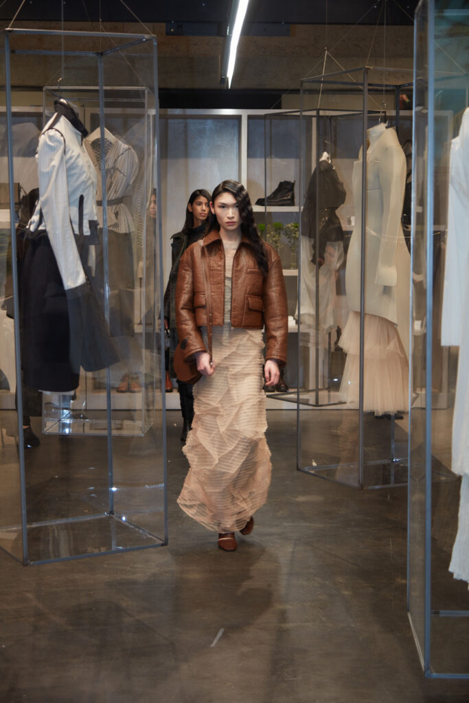 La collezione propone un’eleganza quotidiana e poetica, ispirata alla vita metropolitana e ai valori di comunità e relazioni umane. La fusione di codici sartoriali ed elementi sportswear crea un linguaggio alternativo e fuori dal coro.
