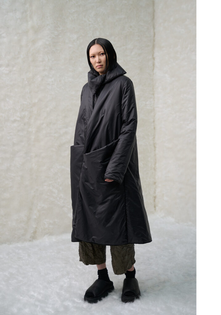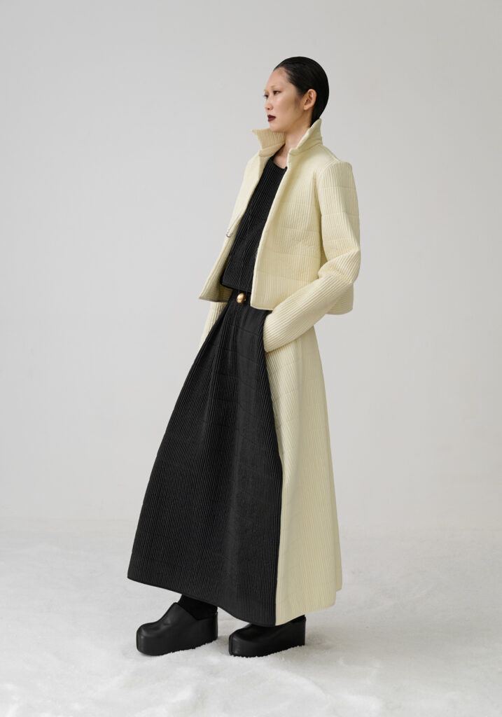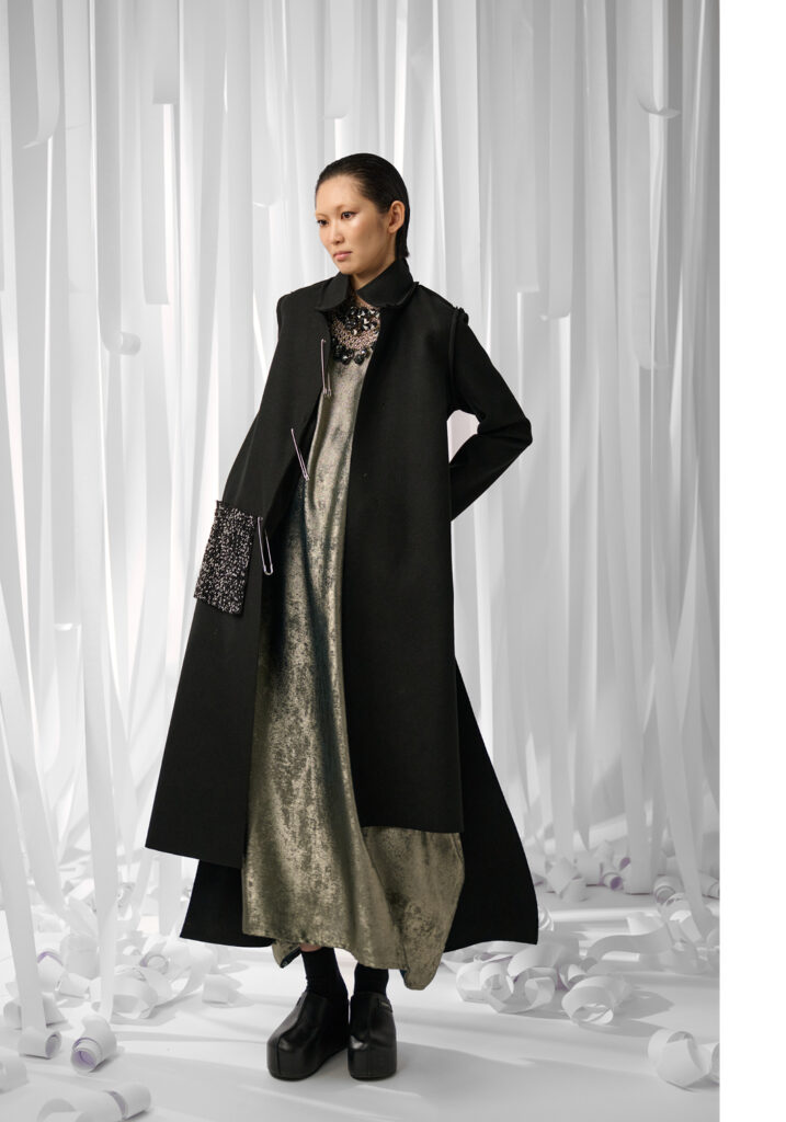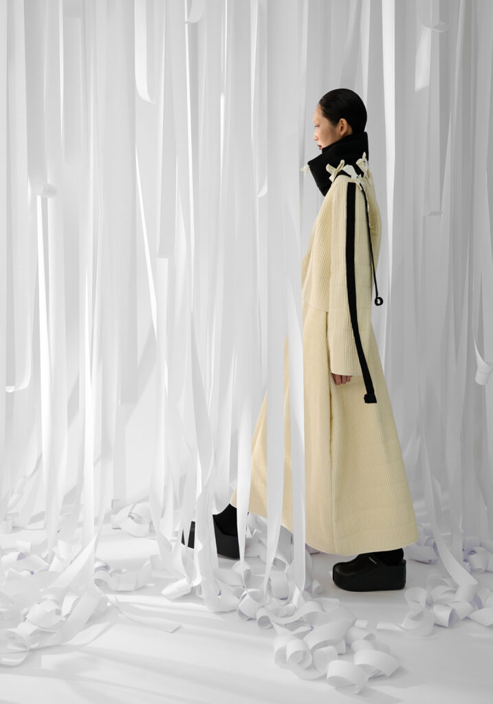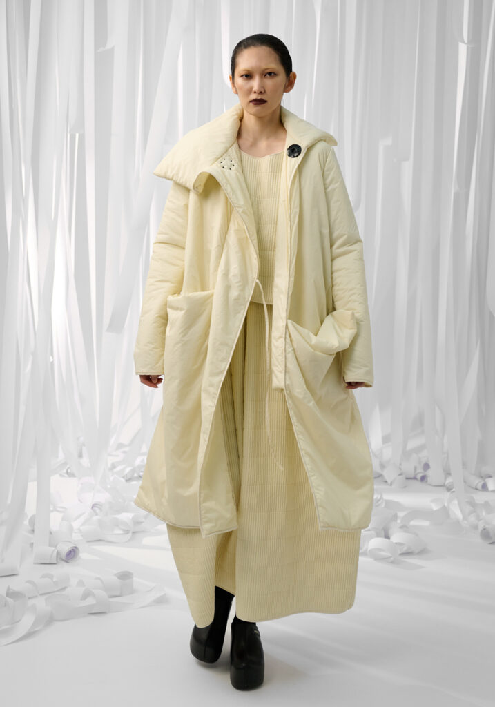 In un mondo che accelera vorticosamente, divorando le immagini ancor prima di averle viste, Maria Calderara decide di rallentare, scendere nel profondo, allontanare la superficialità alla ricerca del senso. Queste le motivazioni per cui la designer si sofferma anche per la collezione Autunno Inverno 25/26 sulla ricerca dell’artista Piero Manzoni.