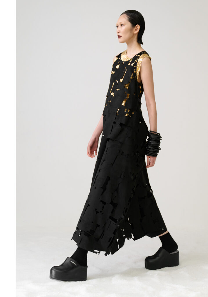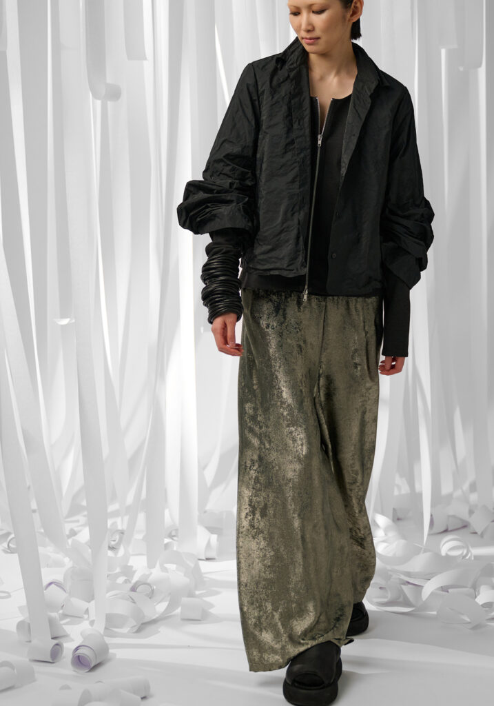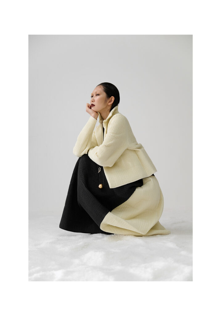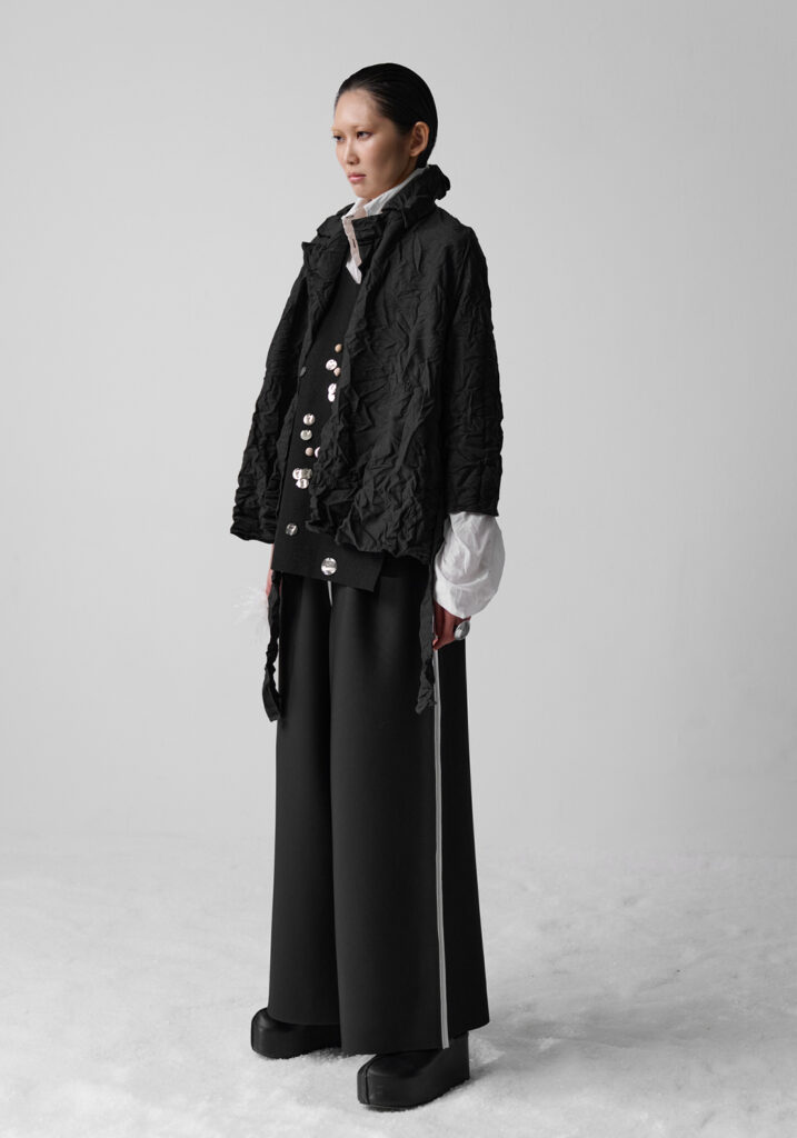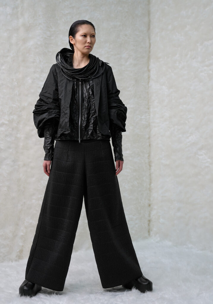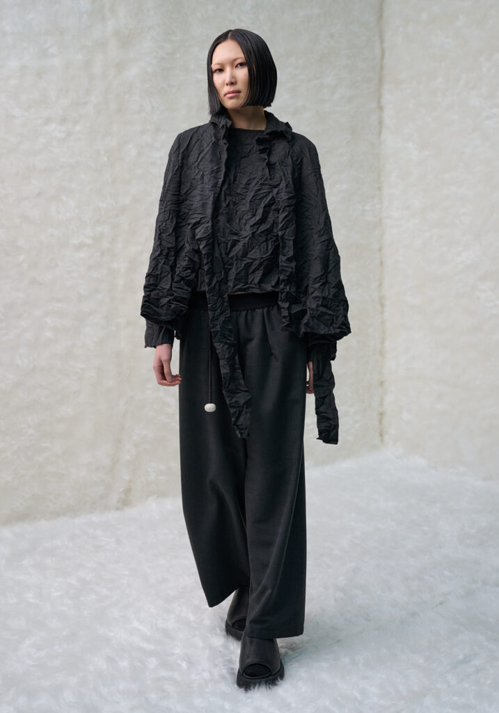 In un mondo che accelera vorticosamente, divorando le immagini ancor prima di averle viste, Maria Calderara decide di rallentare, scendere nel profondo, allontanare la superficialità alla ricerca del senso. Queste le motivazioni per cui la designer si sofferma anche per la collezione Autunno Inverno 25/26 sulla ricerca dell’artista Piero Manzoni.