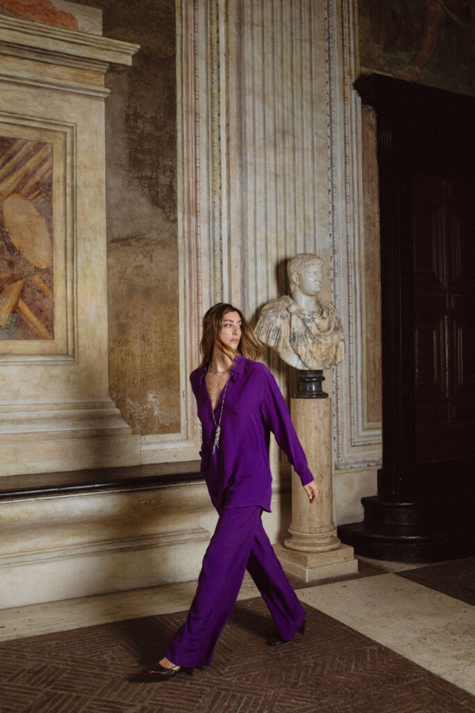 Per questa speciale collaborazione con Momonì, il palazzo per la prima volta si trasforma nel set perfetto per raccontare la nuova collezione pre-SS25 Holiday. La campagna, infatti, celebra l’autenticità e la versatilità dei capi Momonì, con un tocco di giocosità che rispecchia il legame indissolubile tra moda e famiglia.