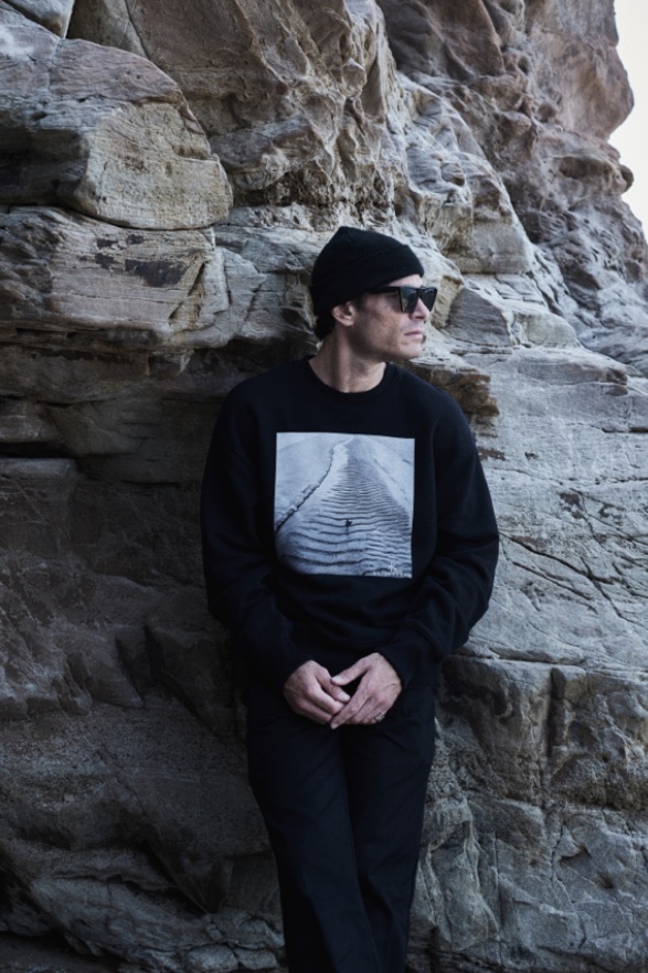 Nella serie Walk on Foam gli scatti fotografici in serigrafia risaltano sul nero assoluto delle felpe girocollo in cotone organico caratterizzate da linee essenziali e vestibilità loose, rievocando l’emozione del primo contatto con l’acqua.
