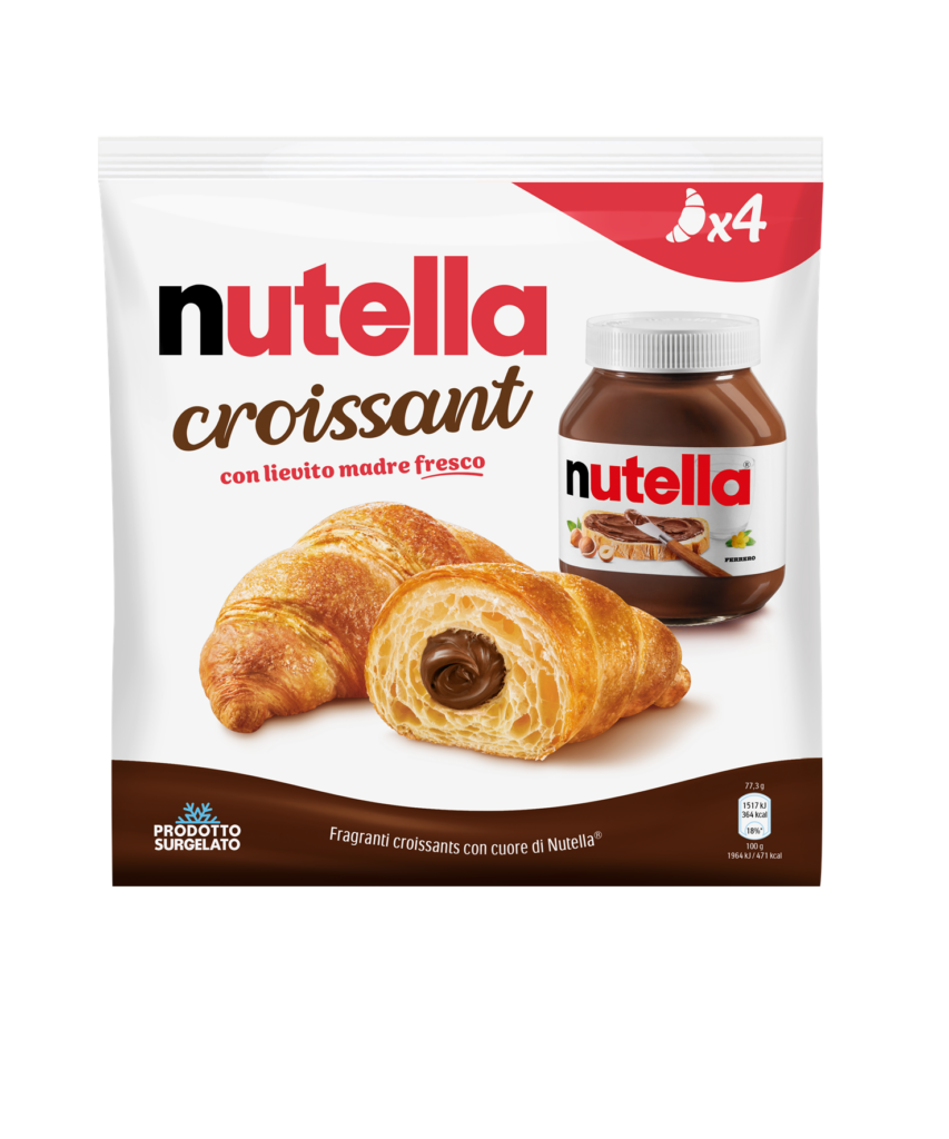 Disponibile da gennaio 2024, Nutella Croissant ha offerto a Ferrero l’opportunità di entrare per la prima volta nel mercato dei surgelati dolci dedicati alla prima colazione, sia in casa che fuori casa. Nutella Croissant si distingue per un impasto fragrante, studiato appositamente per garantire un perfetto equilibrio di gusto con il ripieno di Nutella®. La ricetta prevede l’utilizzo di lievito madre fresco e un processo produttivo che prevede una lievitazione di oltre 100 minuti, assicurando una sfogliatura delicata e una corretta alveolatura della pasta.