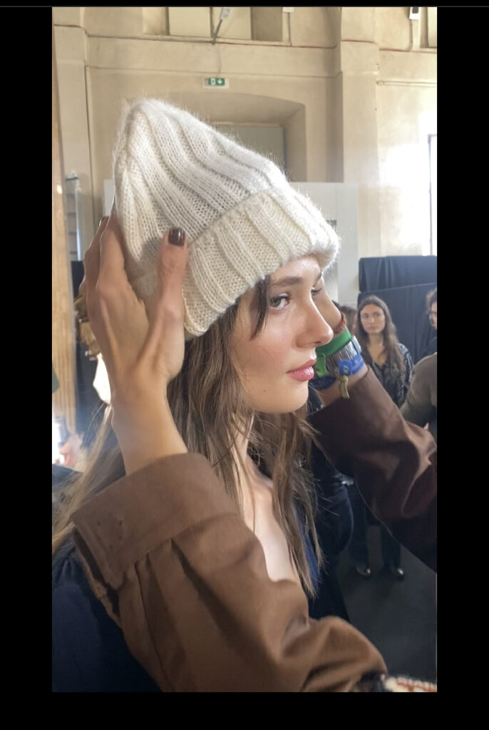 Fiducia, rispetto e consapevolezza. Parole che siglano un legame tacito tra chi produce e chi consuma. Certo se avessimo a disposizione anche noi due stylist di livello come Viviana Volpicella e Simone Guidarelli che ogni mattina si infilano nel nostro armadio e ci sistemano il look avremmo risolto tutti i nostri problemi. Guardavo come Viviana sistemava il cappellino alle modelle nel backstage di Luisa Spagnoli “ il cappellino deve stare con la punta in su e non appiccicato alla testa“. Son tornata a casa e, visto che ne avevano regalato uno a tutti gli ospiti, me lo sono messo come diceva lei… caspita funziona! Non sembravo una modella ma se non altro non assomigliavo ad una foca monaca!
