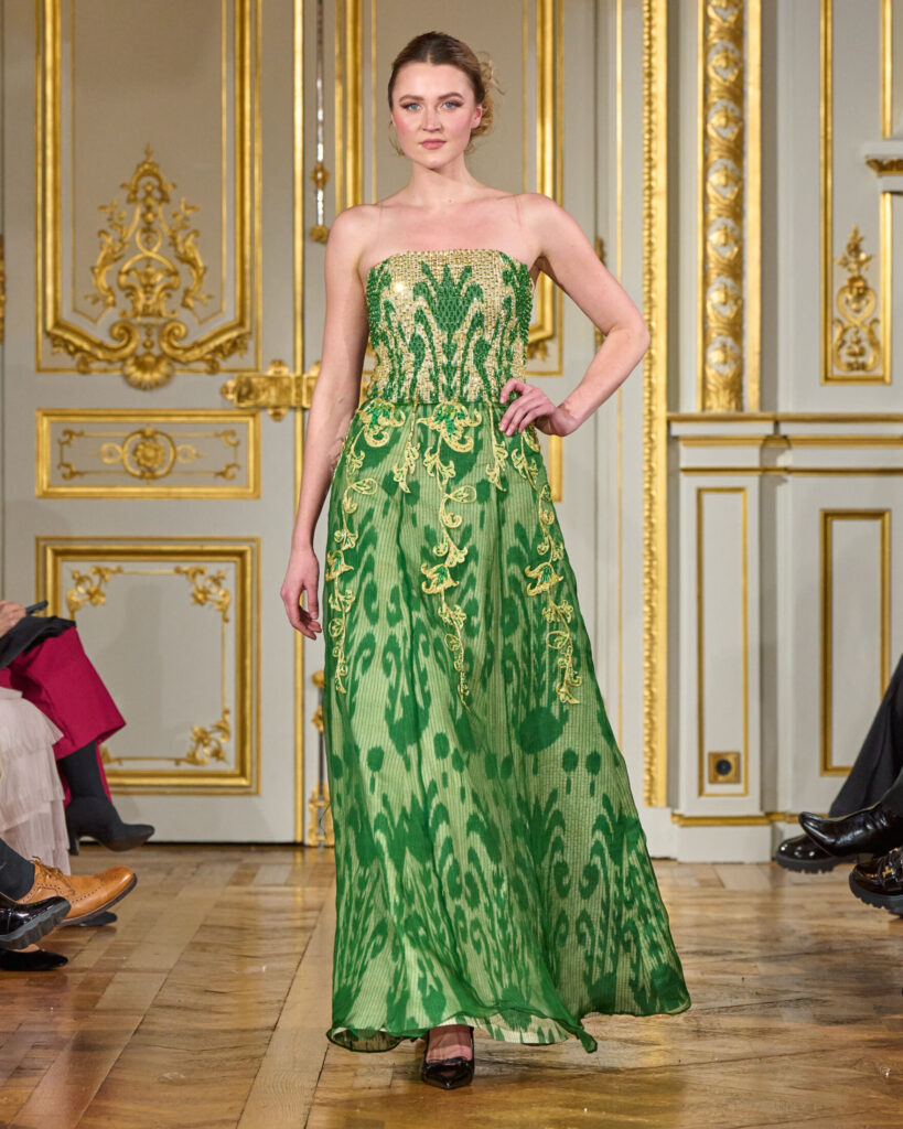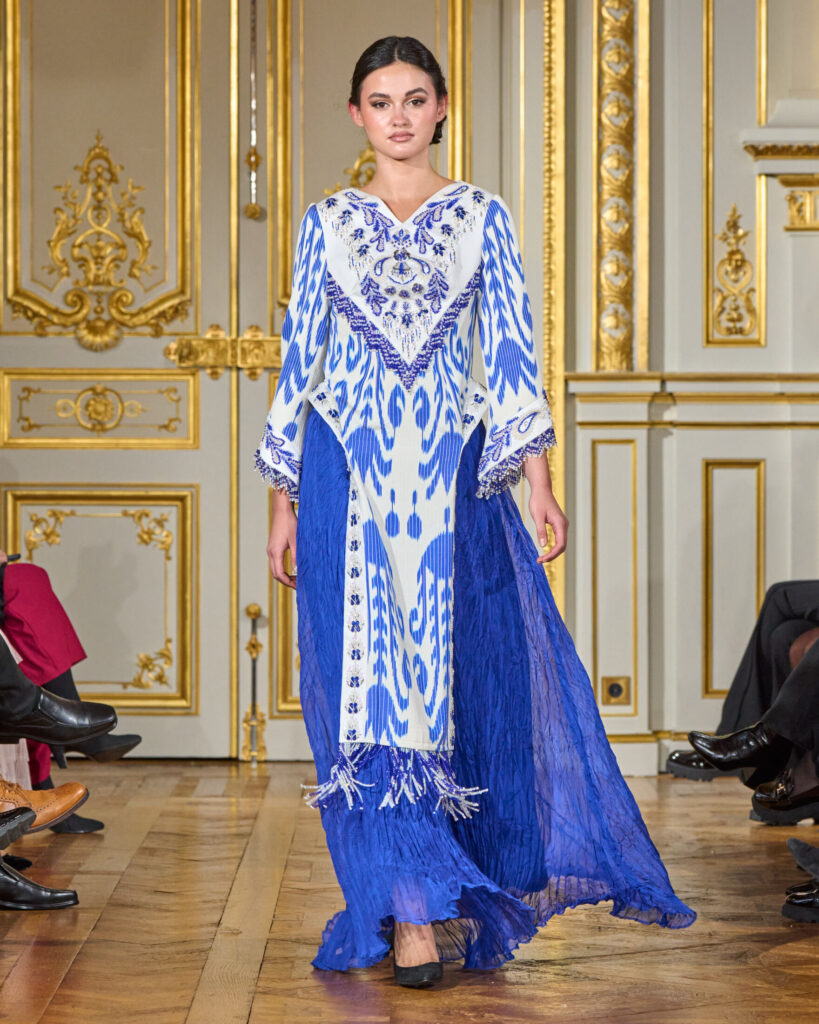 Parigi ha vibrato al ritmo di tessuti scintillanti e creazioni uniche in occasione della sfilata Oriental Fashion Show. Questo evento eccezionale ha offerto un vero e proprio invito al viaggio, svelando la ricchezza e la diversità della moda orientale attraverso le collezioni di stilisti provenienti dai quattro angoli del mondo. La sfilata Oriental Fashion Show ha accompagnato gli spettatori in un viaggio affascinante, un giro del mondo di stili e know-how, che ha messo in luce il talento di stilisti provenienti da Marocco (Regalia by Hind Berrada, Amina Benzekri, Maison Renata, oltre a una collezione di caftani antichi della collezione Madame Aziza Belkhayat), Giordania (Laith Maalouf, Eman Al Ahmad, Leyla Kashani, Sara Mansour, Batool Amar), Egitto (Hany El Behairy), Oman (Yoland), Libano (Bernard Jabbour), Giappone (Yuna Hattori), Repubblica Ceca (Jitka Klett), Serbia (Natasa Saric, Marija Sabic, Bata Spasojevic), Uzbekistan (Ra’no Khamroeva, Nargis di Nargisa Jabbarova, Noila Djalolova, Shakhaziz di Shakhnoza Muzrapova), Moldavia (Maison Riché), Romania (Nadia Gorjan), Guatemala (Marvin Bendana), Turkmenistan (Gowher Gouvernet, Chynar) e Caucaso (Naalamar). Questa diversità geografica ha dato vita a un vero e proprio caleidoscopio di stili, in cui le influenze orientali si fondono armoniosamente con le tendenze occidentali, creando una simbiosi estetica unica.