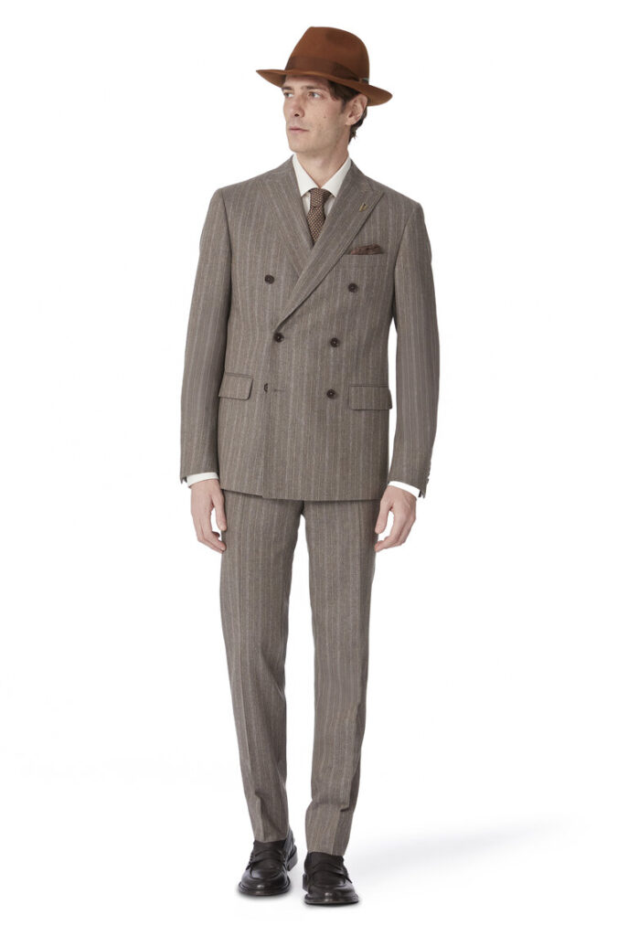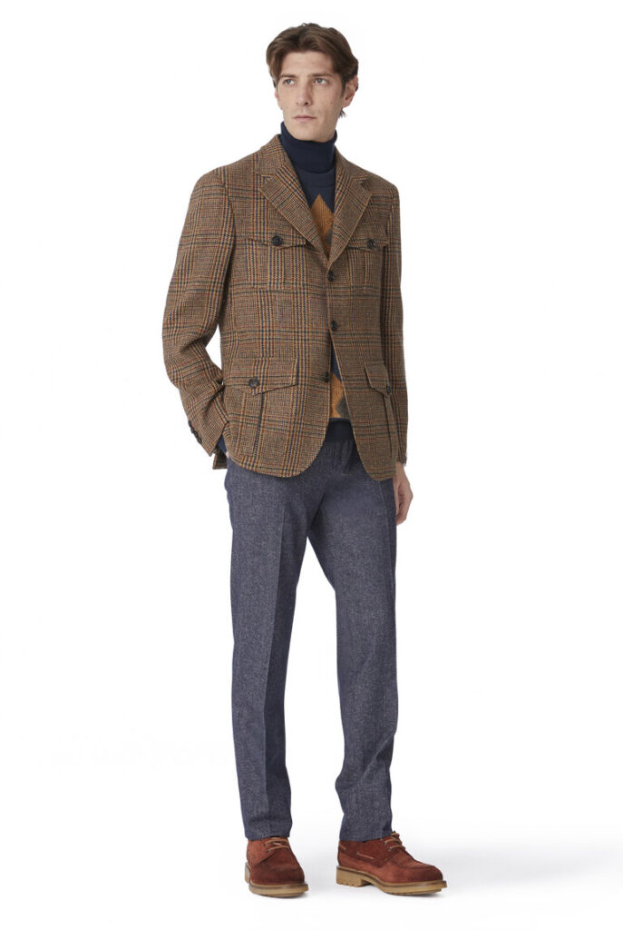 La collezione è un equilibrio perfetto tra tradizione e avanguardia: linee storiche del Brand, come la Vicenza e la Brera, si combinano in nuovi accostamenti, tessuti con disegnature di ispirazione “vintage” vengono reinterpretati con pesi e performance di ultima generazione, capi formali e casualwear vengono mixati per creare un look moderno e rilassato. Il risultato è una collezione versatile, pensata per un uomo che cerca di coniugare la sua personalità con un look intramontabile ma sempre con- temporaneo.