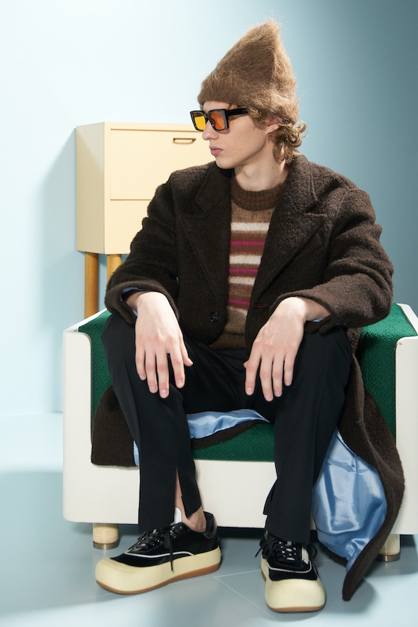 Una rivisitazione postmoderna del classicismo, con le nuove e audaci sneakers Big MODEL. Sartoria, camiceria e maglieria uniscono l’abbigliamento maschile e quello femminile in una visione di genere completa. Apparentemente normali nelle forme, i capi sono esagerati e audaci nei volumi, nelle superfici e nelle finiture. Il gusto per l’imperfezione e alcuni trattamenti di sporcizia aggiungono un tocco di vita. I materiali sono preziosi, ma non sono trattati in modo prezioso.