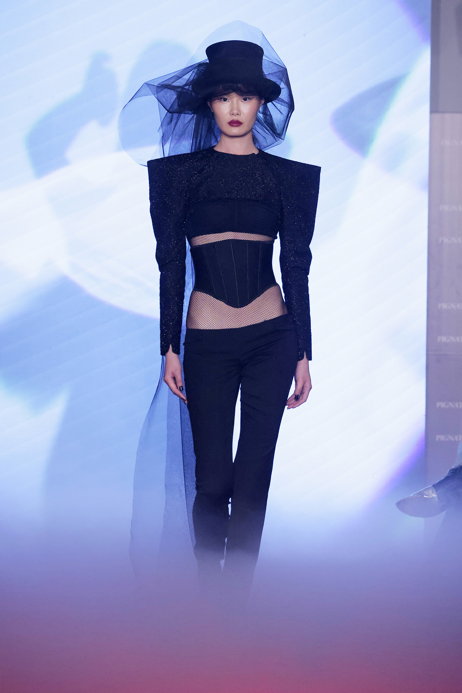 La collezione nasce dal dialogo con l’archivio storico: capi sartoriali originali vengono reinterpretati con uno sguardo internazionale, alternando volumi scultorei e linee fluide, elementi couture e proposte più essenziali. Ne emerge una visione di femminilità attuale, consapevole e sofisticata.