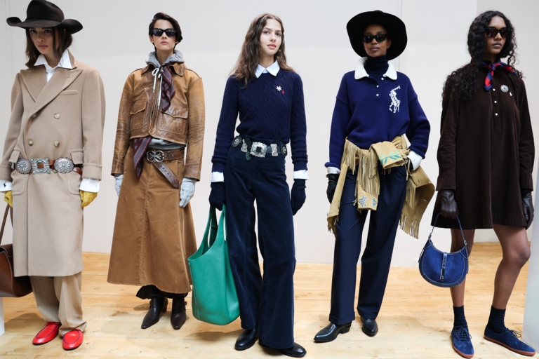 Gli accessori completano la visione con un approccio che unisce funzionalità e espressione personale: cinture larghe indossate sopra capi sartoriali, stivali con dettagli western e guanti in pelle in tonalità inaspettate. La stagione introduce anche una nuova linea di borse, The Polo Blaze, affiancata alle versioni stagionali delle borse Polo ID e Polo Play.