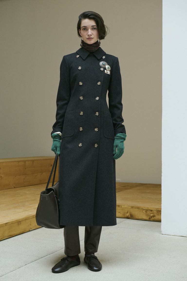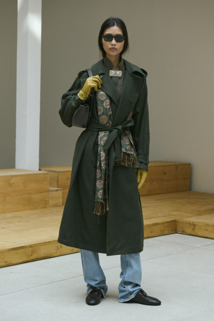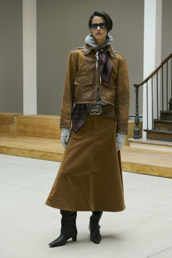 L’outerwear rappresenta il fulcro della collezione. Cappotti sartoriali in lana attraversano l’intera proposta, arricchiti da colletti in shearling che aggiungono un tocco di eleganza ai modelli classici. Il windbreaker rilassato viene reinterpretato in herringbone e in pelle Nappa, offrendo una nuova lettura del tradizionale American sportswear.
