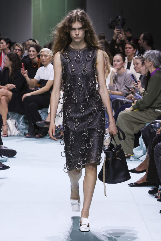 La sequenza di realtà simultanee è un tributo all’individualità, in cui ogni look è un riflesso unico del proprio presente. Prada esalta la pluralità facendo coesistere elementi appartenenti a diverse ere: tali elementi sfidano ogni teoria cronologica e generano contraddizioni e divergenze impossibili. L’idea del supereroe è un’espressione della centralità dell’individuo, della sua volontà e del potere trasformativo della creatività. Tutto cambia.