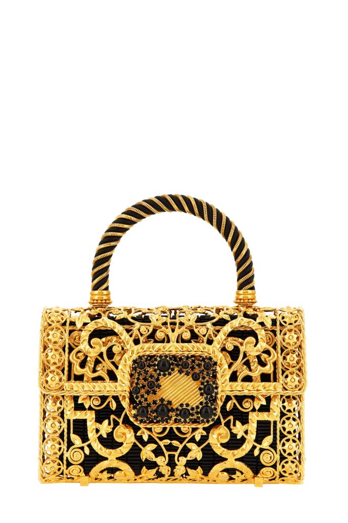 I ricami preziosi – dagli Zardozi in fili d’oro alle applicazioni tridimensionali di perline conferiscono profondità e consistenza alle borse, mentre cascate di perle, cristalli scintillanti e ornamenti scultorei aggiungono dinamismo e luminosità. Le basi in raso delle borse, declinate in tonalità ricche e profonde, sono la tela perfetta per questi dettagli elaborati, evocando la grandiosità del marmo, la patina del metallo o l’eleganza ornamentale del ferro battuto. A completare ogni creazione, i manici-gioiello e le fibbie Efflorescence, impreziositi da pietre naturali, intarsi in corno e cristalli pavé.