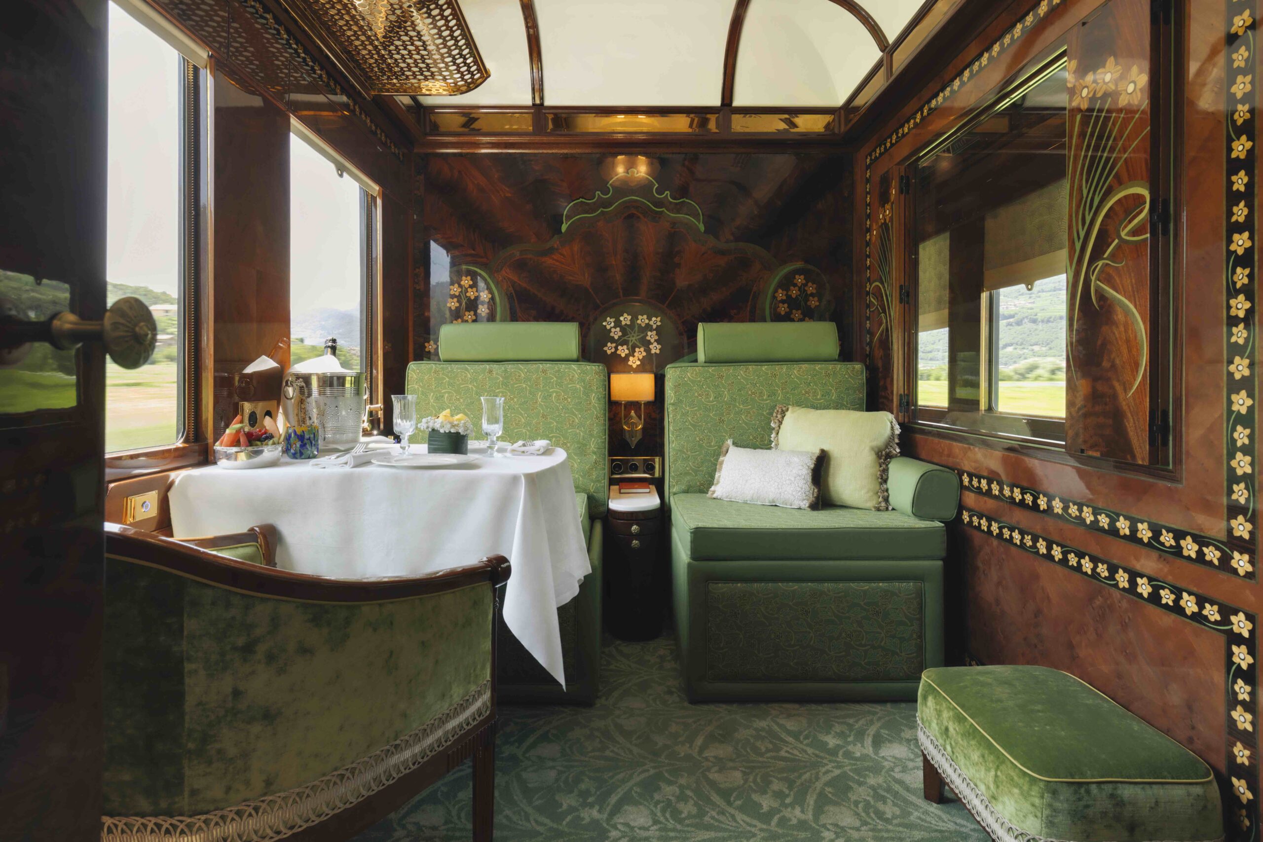 Le Suite di questo treno di lusso sono arredate con raffinati ed esclusivi jacquard custom 100% Trevira CS (quindi ignifughi) che rendono ancora più affascinante un viaggio già da sogno. Tutti realizzati nella tessitura Rubelli di Cucciago (Como), sono declinati nei toni del verde, del blu, del nocciola e del beige/bianco /blu.