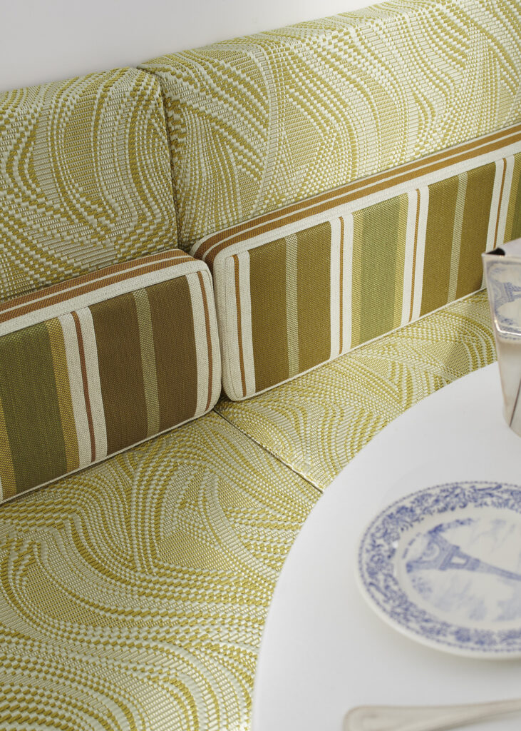 Pensata come una conversazione tra due culture, la collezione fonde raffinatezza europea e spirito inventivo americano, esplorando contrasti di ritmo, luce e materia: giorno e notte, leggerezza e struttura, classicismo e modernità. Il risultato è un portfolio eclettico e sofisticato che comprende tessuti, passamanerie, carte da parati e tappeti, caratterizzati da forti variazioni di scala, texture e colore.