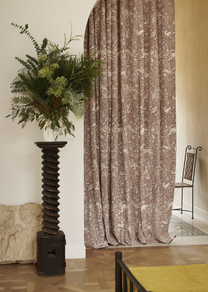 Da un lato, “Shades of Provence” rappresenta l’evoluzione del progetto Atelier Paris, laboratorio creativo europeo del brand. Guidato da Astrid Alineau, lo studio trae ispirazione dalle atmosfere del Sud della Francia, traducendo la luce, i profumi e i paesaggi provenzali in una palette cromatica sofisticata. Toni polverosi e naturali si alternano a accenti più vibranti, ridefinendo tessuti, carte da parati e passamanerie attraverso nuove sfumature e profondità materiche, in un dialogo tra tradizione tessile e sperimentazione contemporanea.