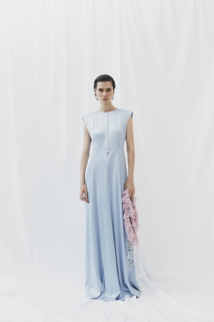 Un ruolo centrale lo giocano le stampe Liberty, reinterpretate su abiti voluminosi dalle costruzioni geometriche in georgette, seta e cotone. Le spalle raglan, esaltate da spalline ampie, donano un tocco contemporaneo che rinnova la grazia senza tempo dello stile provenzale.