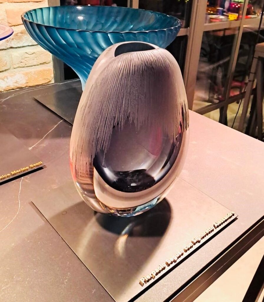 Seguso Vetri D’arte, a sostegno di questa antica tradizione, ha presentato per questa iniziativa due opere ideate da Pierpaolo Seguso e realizzate con i maestri della fornace di famiglia. Tutte le opere realizzate dalle fornaci verranno votate dalla giuria formata da una commissione di indipendenti e pubblico privato.
