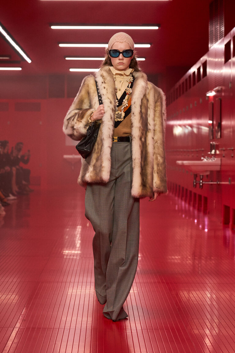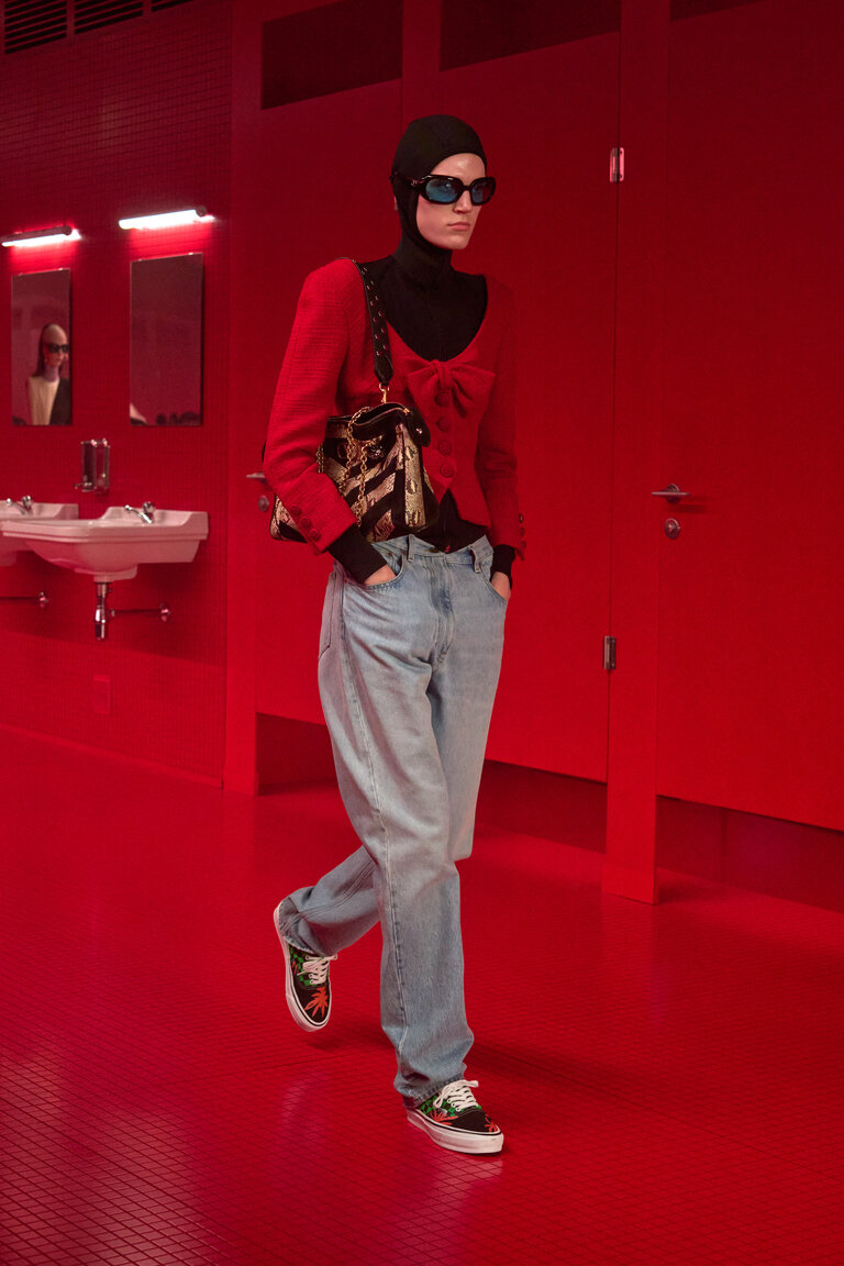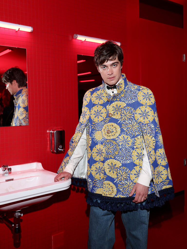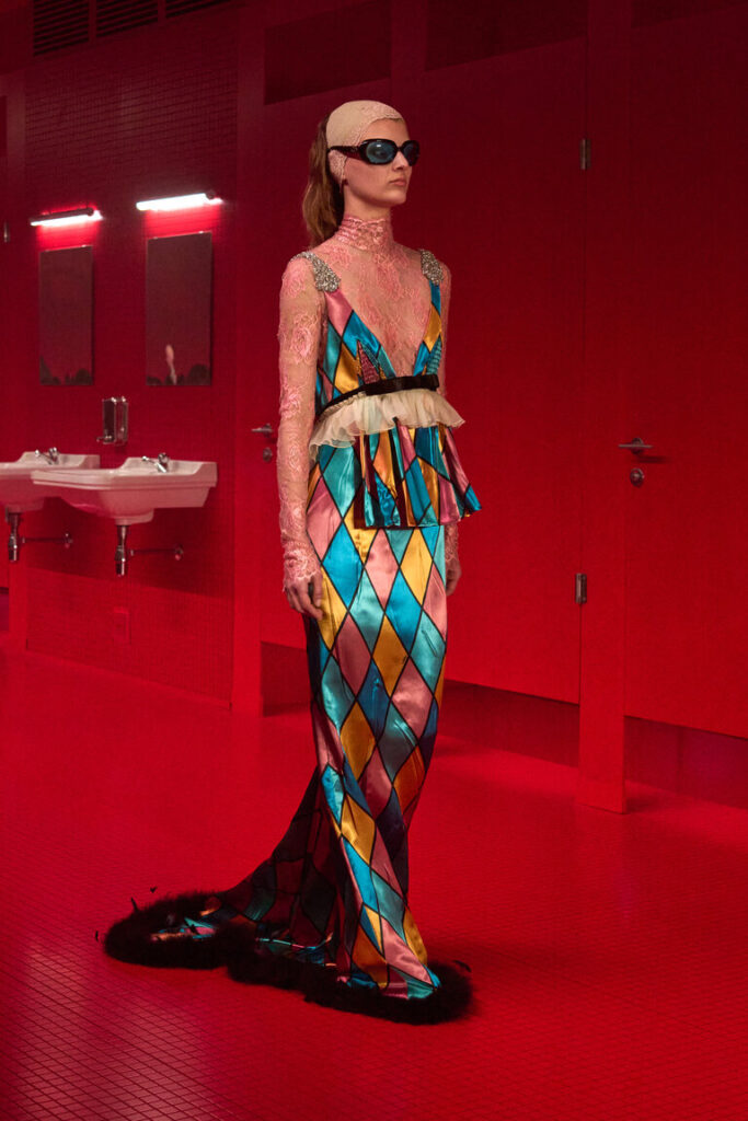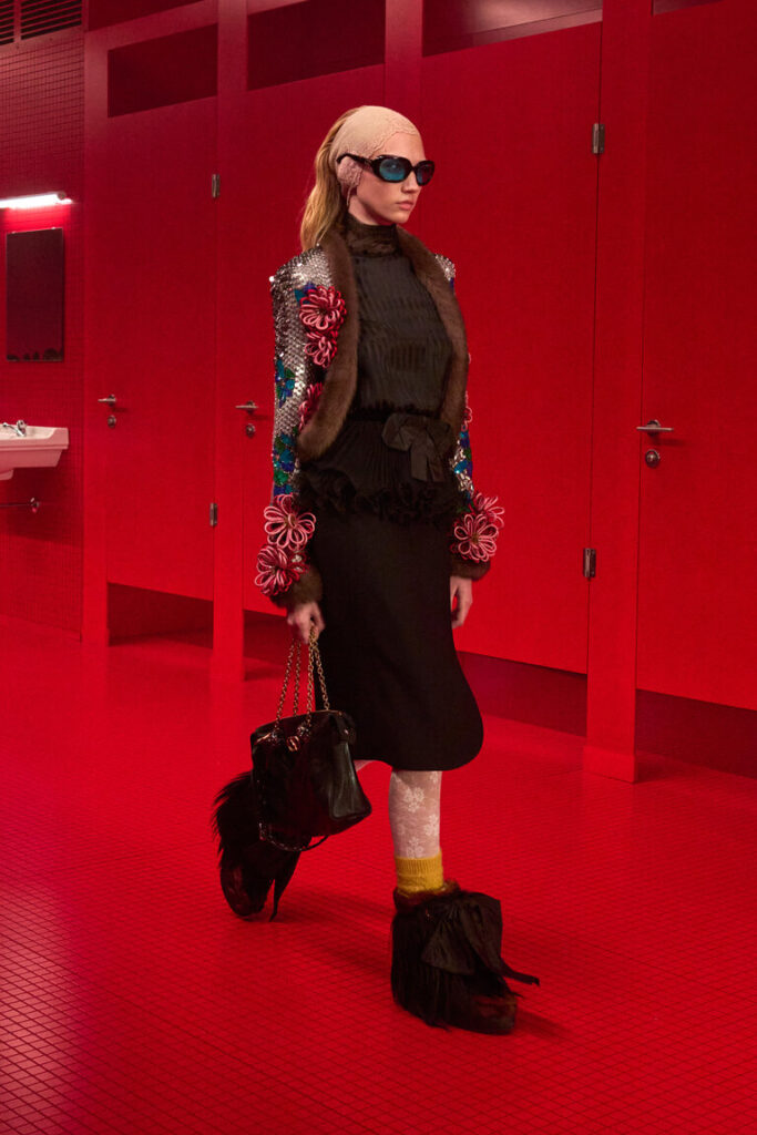 Un bagno pubblico, un contro-luogo che neutralizza e sospende il dualismo tra interno ed esterno, tra ciò che è intimo e ciò che è esposto, tra il personale e il collettivo, tra ciò che rimane privato e quello che si intende condividere, tra profondità e superficie. La location della sfilata VALENTINO LE MÉTA-THÉÂTRE DES INTIMITÉS FALL-WINTER 25/26 esalta l’intimità come rifugio nel tentativo di ritrovare un sé autentico. Alessandro Michele lo definisce uno spazio di apparizione in cui l’intimità riconquista il proprio ruolo di costruzione identitaria, tra vestizioni e svestizioni.