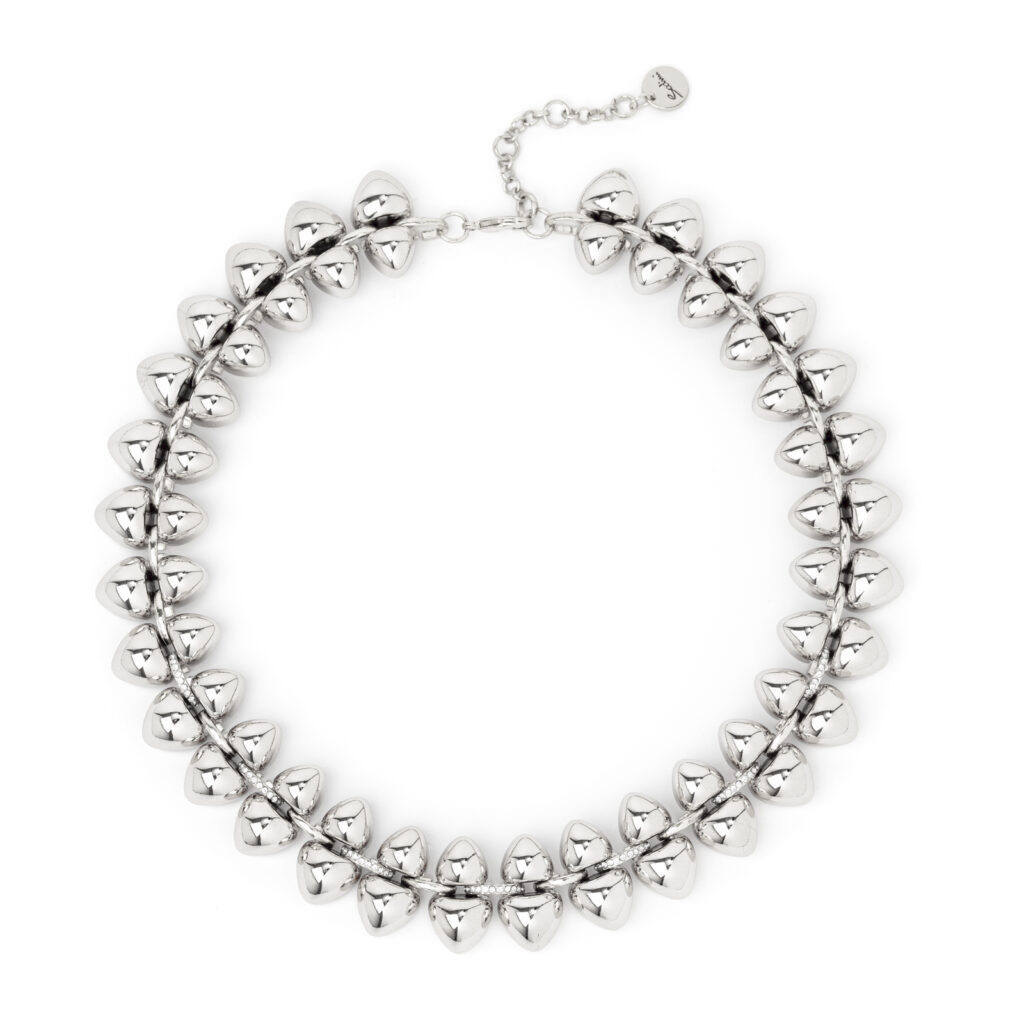Tra i must-have della collezione spiccano il girocollo con placche in argento double size e la collana con elementi dorati regular. Gioielli perfetti per completare un outfit elegante durante un evento esclusivo, un party serale, o per aggiungere un tocco super fashion al proprio look quotidiano.