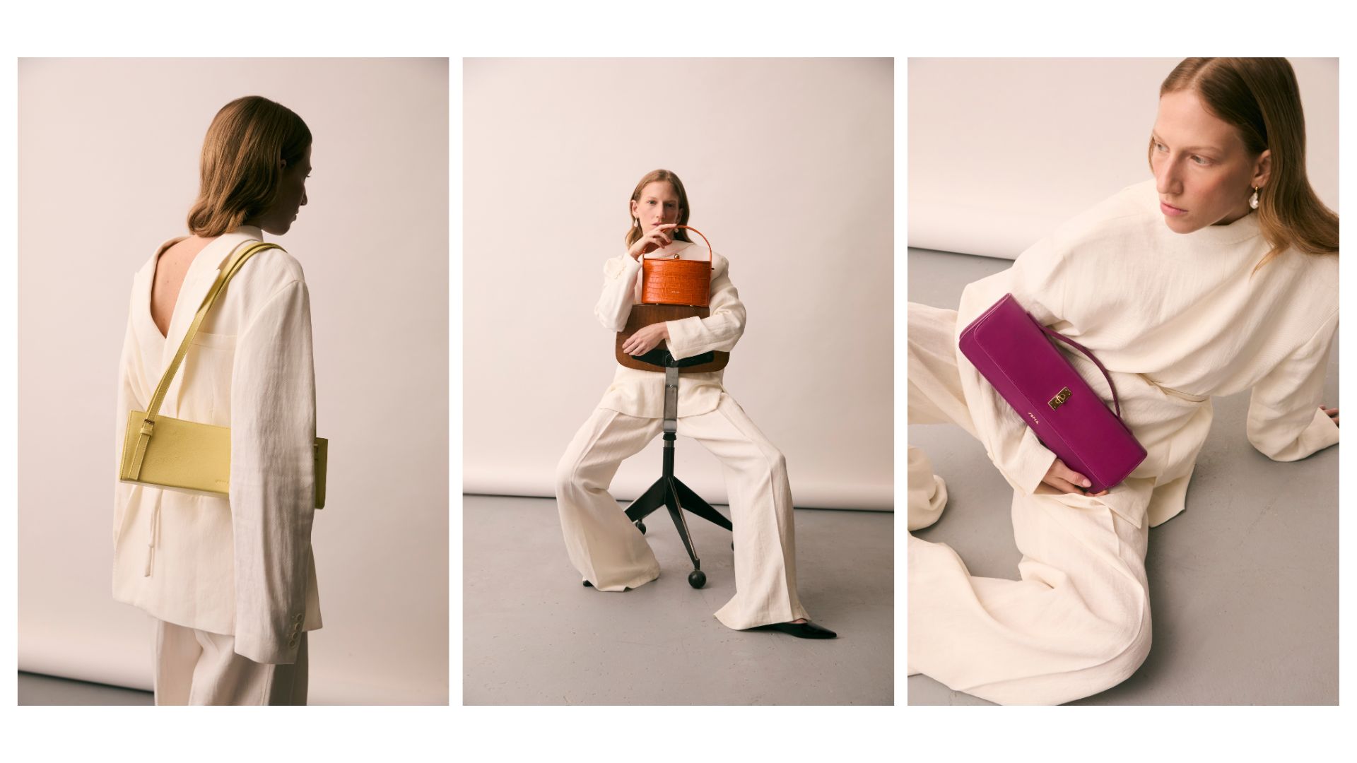 Protagoniste della stagione sono tre nuove tonalità esclusive, pensate come accenti capaci di ridefinire il linguaggio visivo della collezione. Mandarino è un arancione brillante e deciso, realizzato in stampa cocco, che rompe con energia la dualità bianco-nero. Plum, un viola malva profondo in vitello spazzolato, introduce una dimensione più sofisticata e liquida. Banana, infine, è un giallo pallido e contemporaneo, sviluppato in naplak, una pelle verniciata dalla superficie glossy e leggermente crespata.